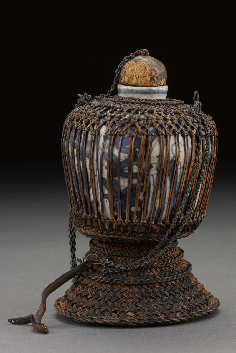 The objects combine Asian and European objects of high quality. The blue porcelain jars are a specialized type of ware called powder blue which was perfected in the Qianlong reign; they have an elegant, undulating profile. The elaborate gilded bronze mounts, which show dragons, were produced in France during the reign of Louis XV.This pair of vessels demonstrates the high regard for fine Chinese porcelain at the European courts. Imported wares were given sophisticated settings to create works which blend East and West.