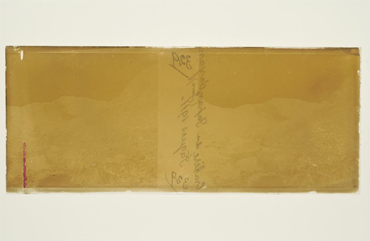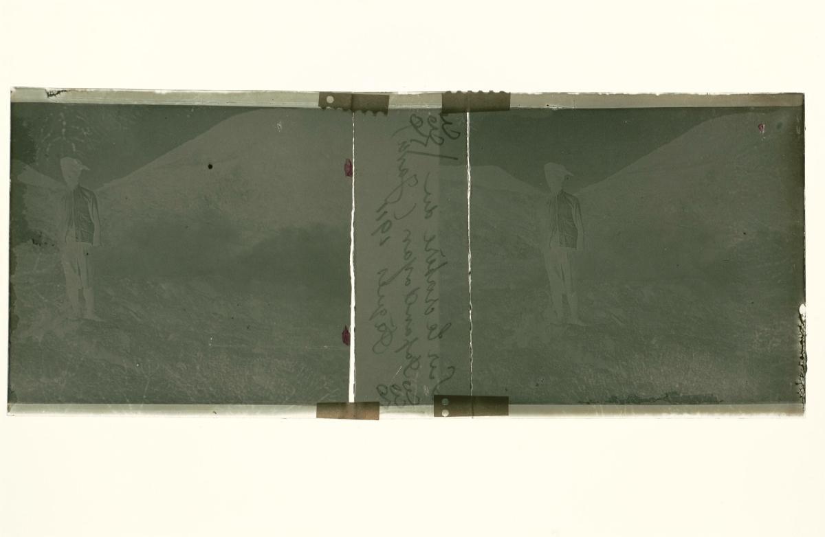 This is a glass stereoscopic slide from the H. Schaefer Collection showing the Kawah Kamojang volcano crater in West Java during Easter.