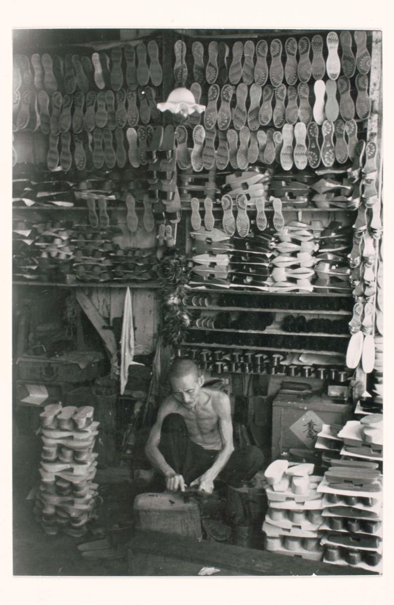 This photograph of a Chinese clog maker at work comes from the album of an RAF pilot who served in Singapore, Ceylon and the Pacific between 1938 and 1939.Most of the RAF pilots who served in Singapore during the 1930s were stationed at Seletar Airbase in the northeastern part of the island. Built on a 600-acre site formerly belonging to Singapore United Rubber Plantations, the airbase was operational by 1928 and officially became an RAF station in 1930. The airbase also served as a civilian airport until 1937, when the Kallang Airport was opened to handle commercial flights. Seletar Airbase was designed to handle both conventional aircraft as well as seaplanes such as the Short Singapore III and Short Sunderland flying boats. The first batch of Singapore IIIs departed from Pembroke Dock in the United Kingdom for Seletar in January 1935 to re-equip Number 205 Squadron. The first of the new Sunderlands arrived in Seletar from Pembroke Dock in June 1938 for use by Number 230 Squadron.