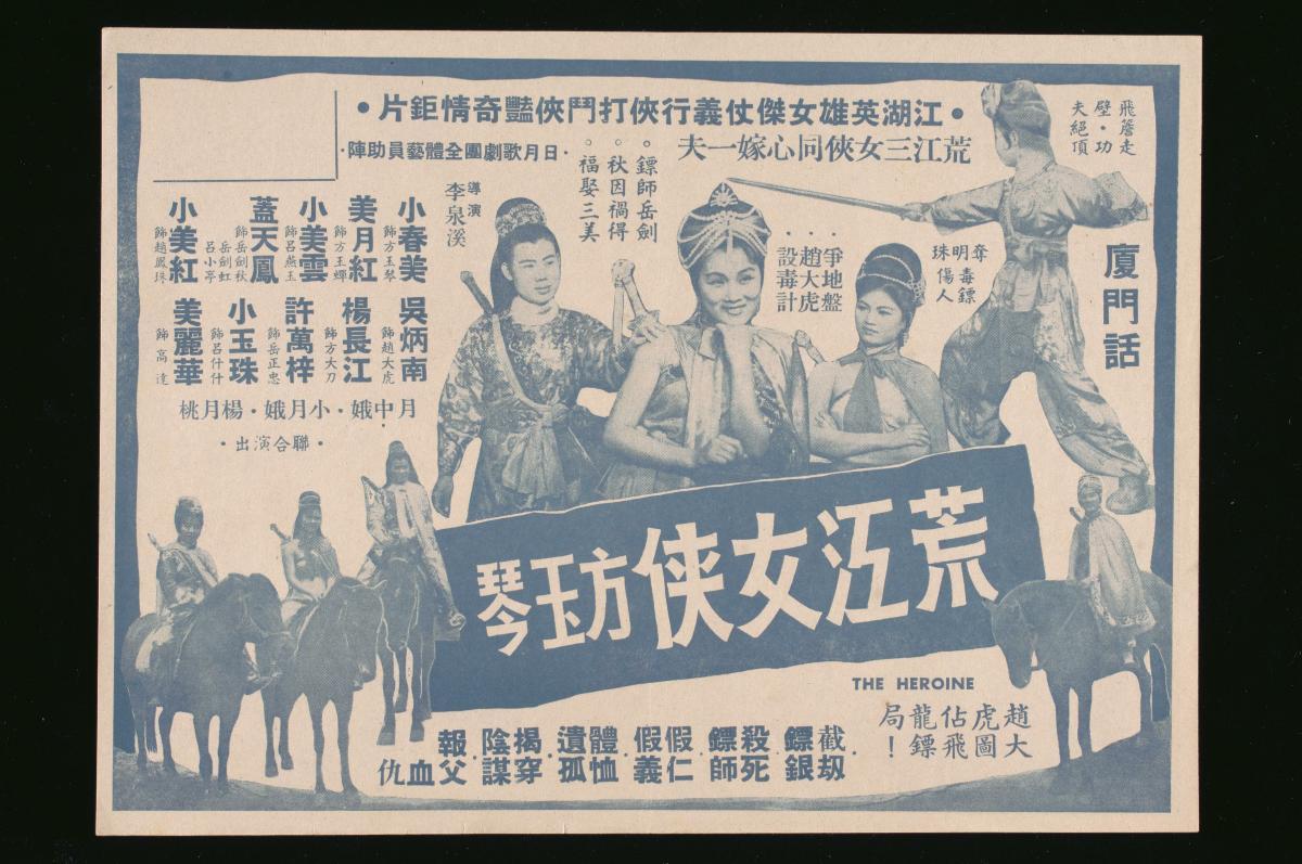 This handbill was used to advertise the Hokkien movie, ‘Liu Quan Offers Vegetable and Fruits to the King of Hell’ (刘全进瓜果, Liuquanjinguaguo). During its Singapore run, the movie was screened at the Marlborough (曼舞罗, Manwuluo) and New Silver City (新银国, Xinyinguo) cinemas.Between the 1950s and 1960s, most Mandarin, Cantonese and other Chinese-dialect movies were made in Hong Kong by film production companies with financial support from Singapore-based film studios such as Shaw Brothers, Cathay and Kong Ngee (光艺, Guanyi). These studios were also involved in the distribution and exhibition of these movies in Singapore and the rest of Southeast Asia through their network of cinemas. In the early 1970s, Mandarin movies from Taiwan became popular, but by the late 1970s, Hong Kong movies were dominant once more.