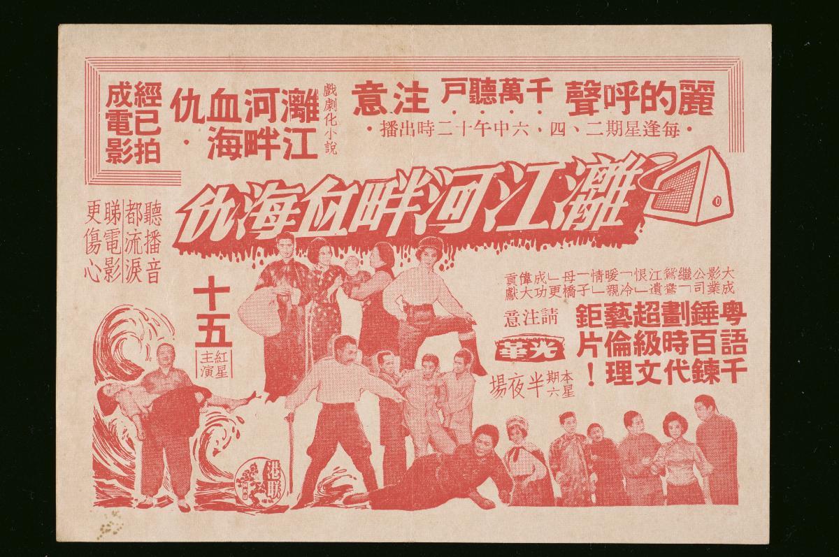 This handbill was used to advertise the Cantonese movie, ‘The Big Battle’ (龙虎门, Longhumen), which was based on a Chinese opera. During its Singapore run, the movie was screened at the Oriental (东方, Dongfang) and Grand (大光, Daguang) cinemas.Between the 1950s and 1960s, most Mandarin, Cantonese and other Chinese-dialect movies were made in Hong Kong by film production companies with financial support from Singapore-based film studios such as Shaw Brothers, Cathay and Kong Ngee (光艺, Guanyi). These studios were also involved in the distribution and exhibition of these movies in Singapore and the rest of Southeast Asia through their network of cinemas. In the early 1970s, Mandarin movies from Taiwan became popular, but by the late 1970s, Hong Kong movies were dominant once more.