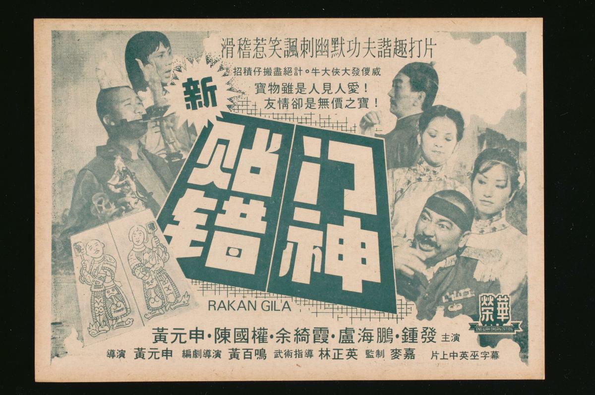 This handbill was used to advertise the Cantonese movie, ‘Chances for Great Success’ (终归有日龙穿凤, Zhongguiyourilongchuanfeng), also known as ‘Chances for Love’, which was based on a Chinese opera. During its Singapore run, the movie was screened at the Marlborough (曼舞罗, Manwuluo) cinema.Between the 1950s and 1960s, most Mandarin, Cantonese and other Chinese-dialect movies were made in Hong Kong by film production companies with financial support from Singapore-based film studios such as Shaw Brothers, Cathay and Kong Ngee (光艺, Guanyi). These studios were also involved in the distribution and exhibition of these movies in Singapore and the rest of Southeast Asia through their network of cinemas. In the early 1970s, Mandarin movies from Taiwan became popular, but by the late 1970s, Hong Kong movies were dominant once more.