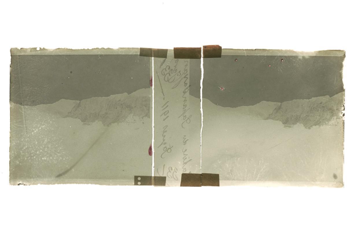 This is a glass stereoscopic slide from the H. Schaefer Collection showing a scenic view of the valley of Mount Panpadayan during Easter.