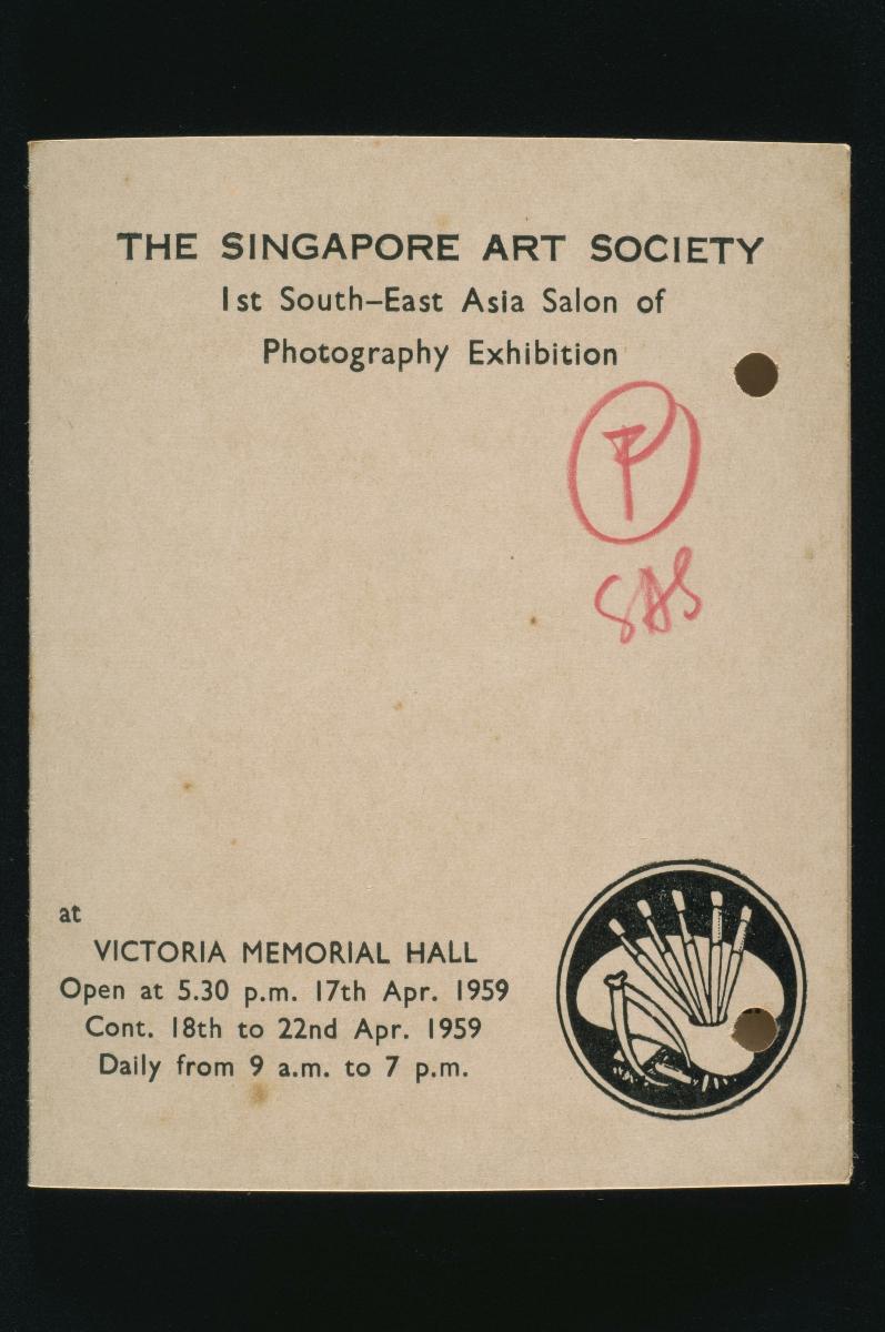 This draft transcript was for a speech to be given at the First South-East Asia Salon of Photography Exhibition. The cultural event was sponsored by the Singapore Art Society’s Photographic Group and held at the Victoria Memorial Hall between 17 and 22 April 1959.The artefact most probably belonged to Ho Kok Hoe, a local architect and artist who learned to paint from his father Ho Kwong Yew, who was also an architect and artist, and his grandfather, who was a calligrapher. The younger Ho was a prominent architect who, while working for the family’s architectural firm Ho Kwong Yew & Sons, was responsible for designing Malaysia’s Muzium Negara (National Museum) in the 1960s. He was also actively involved in the local arts scene, especially during his two stints (1954–1967 and 1981–1983) as president of the Singapore Art Society. The Society was founded in October 1949 to help spread the practice and appreciation of art, improve the quality of local art, promote art exchanges with other countries and create opportunities for artists to learn and exhibit their works. The founding members of the society were, namely: Richard Walker (Art Superintendent); Charles Sulisbury (British Council); C. A. Gibson-Hill (Raffles Library and Museum); Francis Thomas (Chairman, Inter-School Art Exhibition Committee); Liu Kang (President, Society of Chinese Artists); Professor Roy Morell (University of Malaya); Mrs. Phillis Mackenzie; Suri bin Mohyani; and Tan Khoon Seng.
