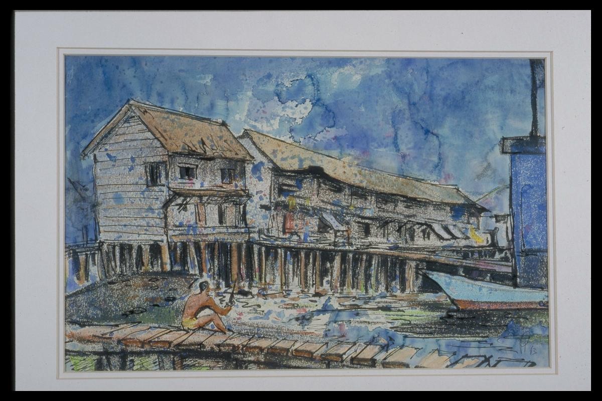 This photograph of a house on a jetty comes from the album of an RAF pilot who served in Singapore, Ceylon and the Pacific between 1938 and 1939.Most of the RAF pilots who served in Singapore during the 1930s were stationed at Seletar Airbase in the northeastern part of the island. Built on a 600-acre site formerly belonging to Singapore United Rubber Plantations, the airbase was operational by 1928 and officially became an RAF station in 1930. The airbase also served as a civilian airport until 1937, when the Kallang Airport was opened to handle commercial flights. Seletar Airbase was designed to handle both conventional aircraft as well as seaplanes such as the Short Singapore III and Short Sunderland flying boats. The first batch of Singapore IIIs departed from Pembroke Dock in the United Kingdom for Seletar in January 1935 to re-equip Number 205 Squadron. The first of the new Sunderlands arrived in Seletar from Pembroke Dock in June 1938 for use by Number 230 Squadron.