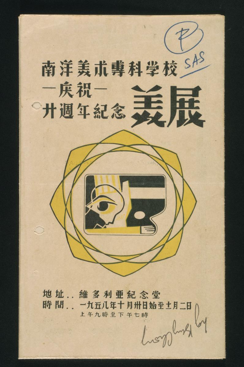 This invitation card was to the Nanyang Academy of Fine Arts 26th Graduation Art Exhibition held at the Victoria Memorial Hall between 25 and 27 November 1966.The artefact most probably belonged to Ho Kok Hoe, a local architect and artist who learned to paint from his father Ho Kwong Yew, who was also an architect and artist, and his grandfather, who was a calligrapher. The younger Ho was a prominent architect who, while working for the family’s architectural firm Ho Kwong Yew & Sons, was responsible for designing Malaysia’s Muzium Negara (National Museum) in the 1960s. He was also actively involved in the local arts scene, especially during his two stints (1954–1967 and 1981–1983) as president of the Singapore Art Society. The Society was founded in October 1949 to help spread the practice and appreciation of art, improve the quality of local art, promote art exchanges with other countries and create opportunities for artists to learn and exhibit their works. The founding members of the society were, namely: Richard Walker (Art Superintendent); Charles Sulisbury (British Council); C. A. Gibson-Hill (Raffles Library and Museum); Francis Thomas (Chairman, Inter-School Art Exhibition Committee); Liu Kang (President, Society of Chinese Artists); Professor Roy Morell (University of Malaya); Mrs. Phillis Mackenzie; Suri bin Mohyani; and Tan Khoon Seng.