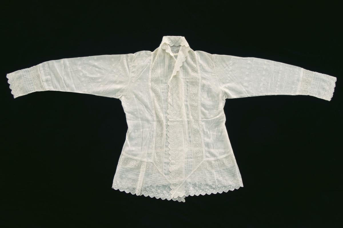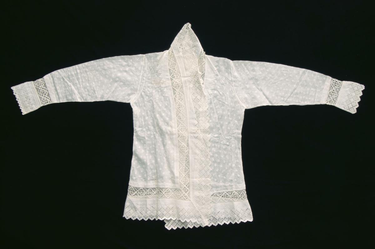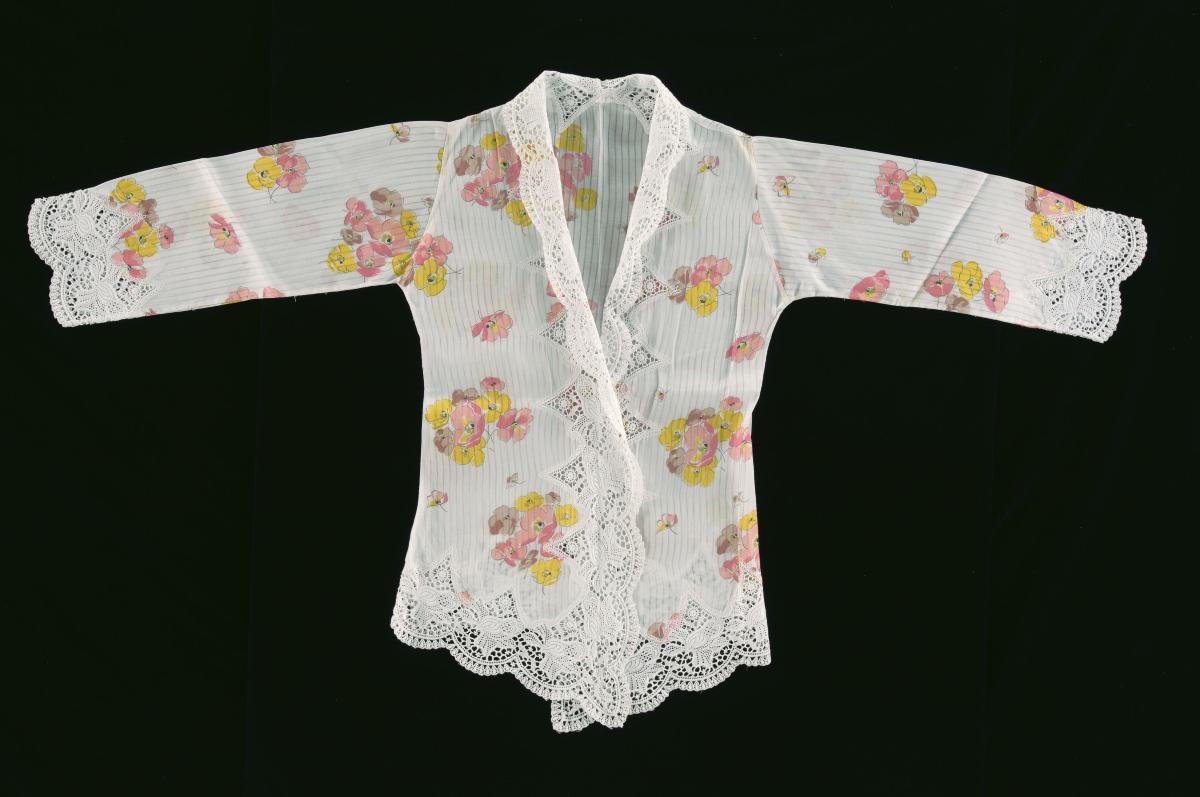 The muted beige hue of this piece suggests that it could have been worn by an older Nonya, since brighter colours and pastels were normally associated with the youth. Camisoles and chemises known as 'kutang', which were sometimes trimmed with crochet work, were worn beneath these sheer and translucent garments.The kebaya is a long-sleeved, open-front blouse typically paired with a colourful batik sarong. Kebayas are thought to have been first worn by the Indo-Dutch ladies in the latter part of the 19th century. Its exact origins remain unclear, although some suggest that it comes from the Arabic abaya, a long, open-front tunic. The kebaya has also been associated with the Portuguese kobaya, a lace-trimmed blouse.By the 1940s, the increased popularity of hand-turned (and later, foot-powered) sewing machines made stunning and intricate embroidery possible. Embroidery-work, also known as 'sulam', has since been viewed as a distinguishing feature of kebayas.The Peranakan Chinese kebaya is one of the most distinctive features of the Peranakan Chinese today. It is currently undergoing a revival in Singapore and Malaysia, with many Peranakan Chinese women wearing kabayas during festive occasions like wedding and Chinese New Year as a mark of their Peranakan identity. Many of the old kabayas from the early to mid 20th century continue to inspire new creations today.