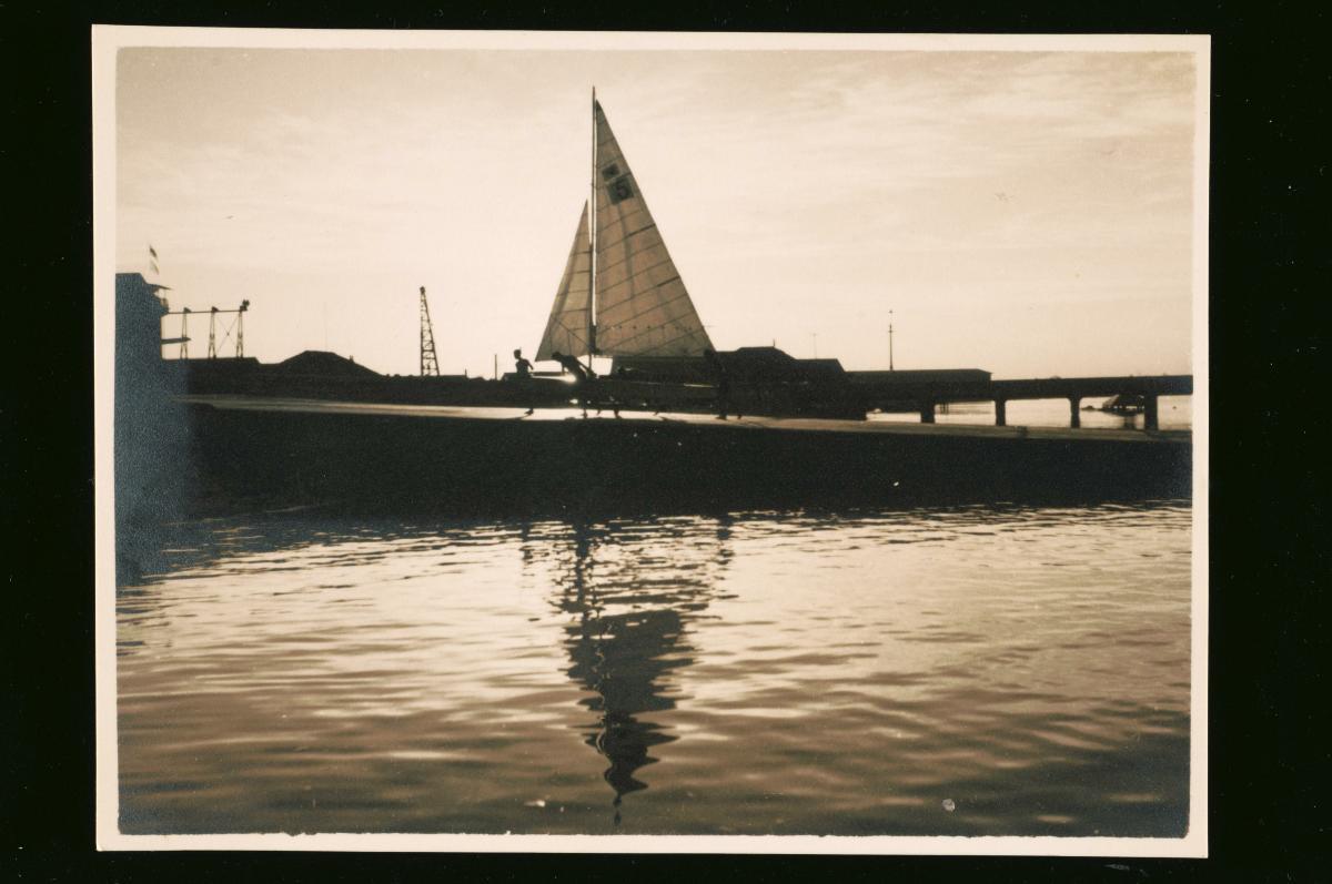 This photograph of men pushing a sailboat up a slipway comes from the album of an RAF pilot who served in Singapore, Ceylon and the Pacific between 1938 and 1939.Most of the RAF pilots who served in Singapore during the 1930s were stationed at Seletar Airbase in the northeastern part of the island. Built on a 600-acre site formerly belonging to Singapore United Rubber Plantations, the airbase was operational by 1928 and officially became an RAF station in 1930. The airbase also served as a civilian airport until 1937, when the Kallang Airport was opened to handle commercial flights. Seletar Airbase was designed to handle both conventional aircraft as well as seaplanes such as the Short Singapore III and Short Sunderland flying boats. The first batch of Singapore IIIs departed from Pembroke Dock in the United Kingdom for Seletar in January 1935 to re-equip Number 205 Squadron. The first of the new Sunderlands arrived in Seletar from Pembroke Dock in June 1938 for use by Number 230 Squadron.