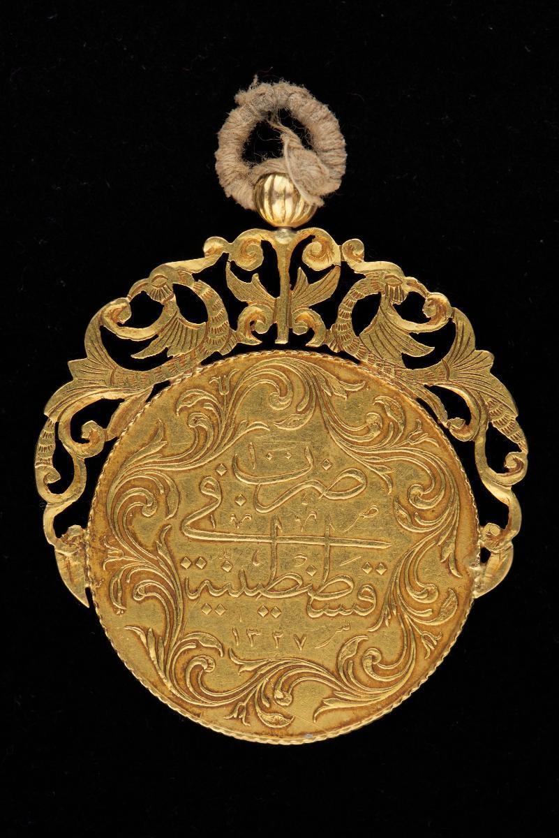 This heart shaped pendant is also a locket. It is set with intan or rose cut diamonds and the gold on the front panel of the locket is worked into the shape of an insect. This pendant locket would have likely been strung on a simple gold chain and worn as a necklace.Pendant lockets such as this show European influence as the wearing of lockets was not as common in Chinese tradition.