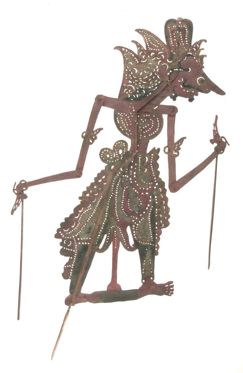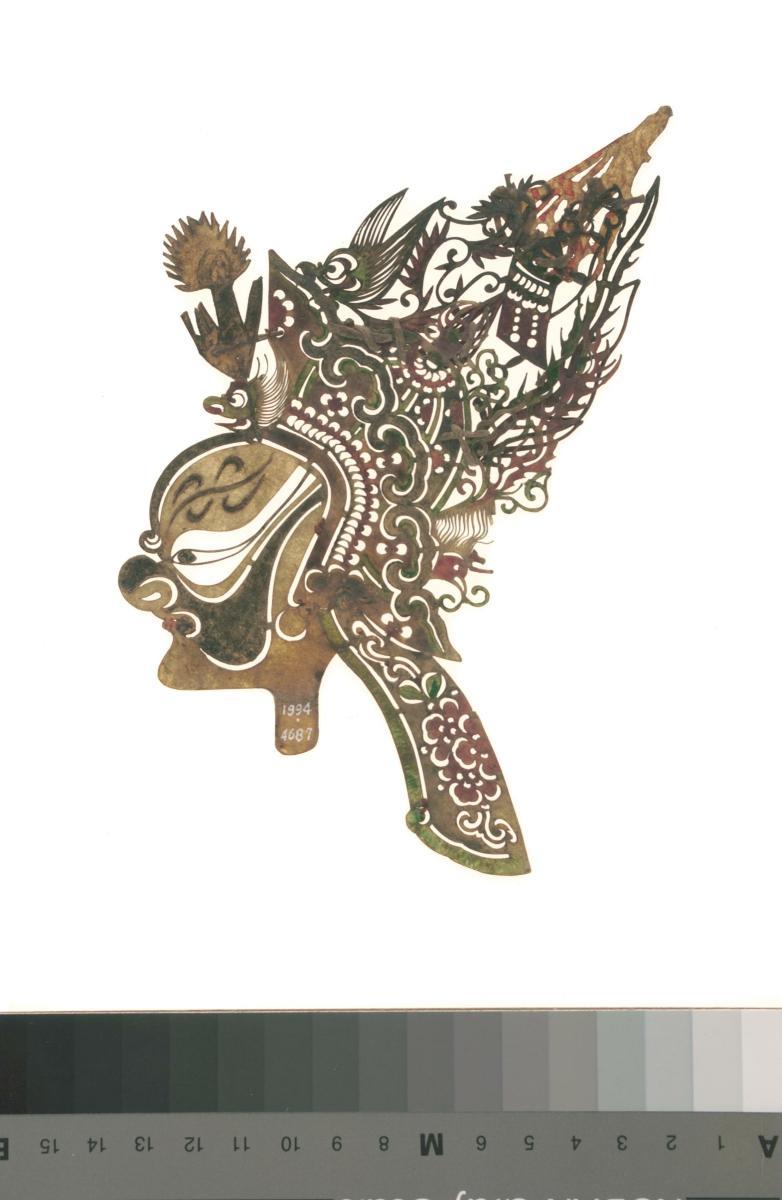 Pair of shadow puppets, Cao Cao and hat