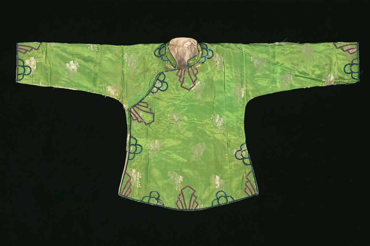 This is a white cape decorated with a peacock motif and feathers worn during a Chinese opera performance. The design of the costume suggests that the character is a maiden from a wealthy family or of royal lineage.Chinese opera has its origins in Shang dynasty rituals and shamanistic worship but has evolved over time to become an established, stylized dramatic art form. Chinese opera was brought to Singapore by the Chinese immigrants and was referred to locally as Chinese ‘wayang’, the latter being a Malay term that denotes a theatrical or dramatic performance. It was especially popular from the 1880s to the 1930s, as it was an affordable source of entertainment for the masses. Wealthy Chinese families were also known to be patrons of opera troupes, engaging them for private performances in their residences. Typically, Chinese operas were performed on makeshift stages near temples or in temple compounds as they served as a form of entertainment to the gods and were thus essential to the religious festivities. Performances were also staged in opera theatres. They were constructed as early as the 1880s and largely clustered in the Chinatown district. The popularity of Chinese operas waned drastically from the 1950s with the advent of film and television. Nevertheless, they remain an integral part of Singapore’s cultural landscape today.