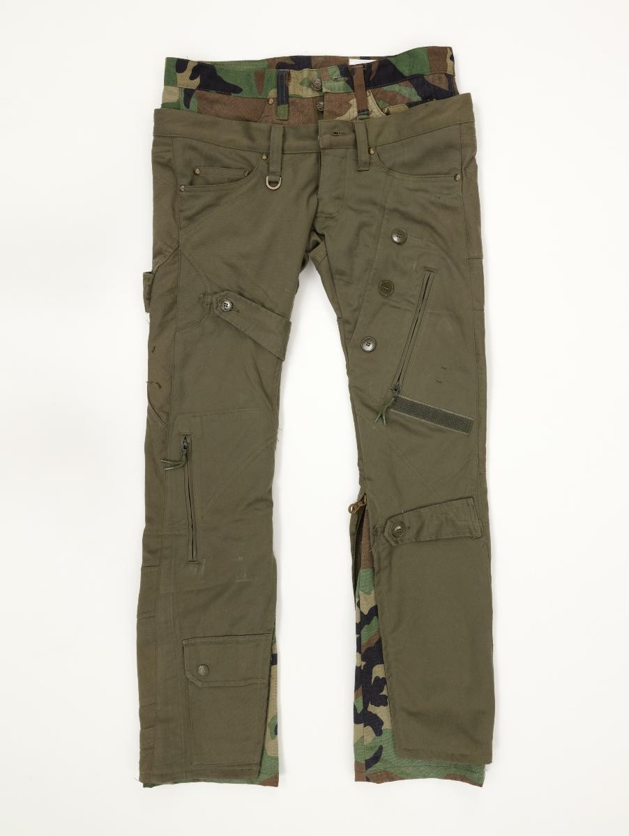 This is a pair of pants in camouflage print by renowned French haute couture designer Jean Paul Gaultier.