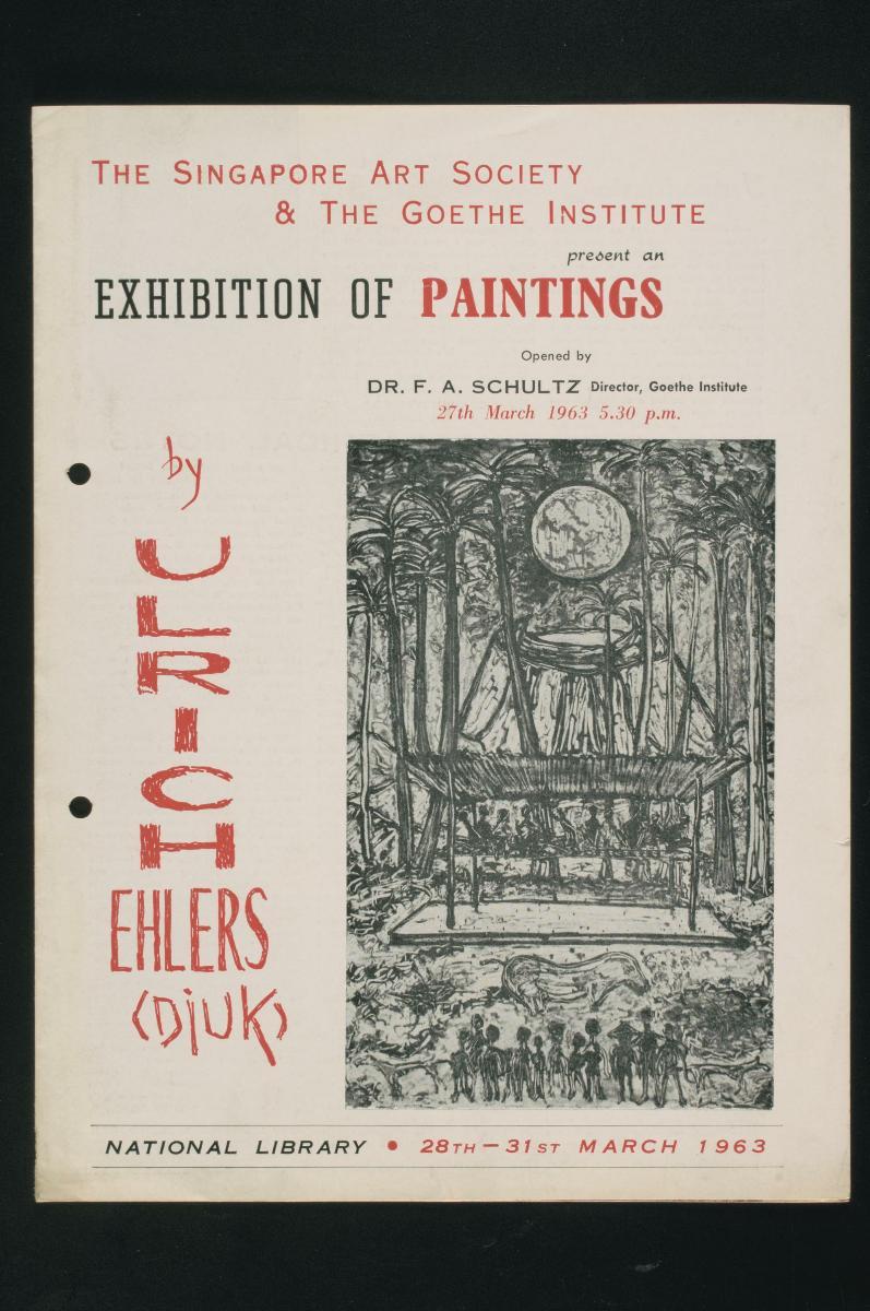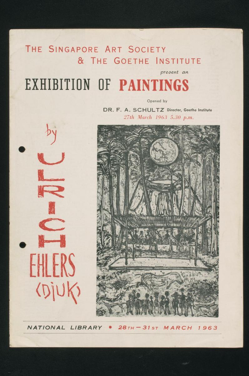 Catalogue for the exhibition of paintings by Hasan Djaafar presented by the Singapore Art Society at the Singapore Polytechnic.The artefact most probably belonged to Ho Kok Hoe, a local architect and artist who learned to paint from his father Ho Kwong Yew, who was also an architect and artist, and his grandfather, who was a calligrapher. The younger Ho was a prominent architect who, while working for the family’s architectural firm Ho Kwong Yew & Sons, was responsible for designing Malaysia’s Muzium Negara (National Museum) in the 1960s. He was also actively involved in the local arts scene, especially during his two stints (1954–1967 and 1981–1983) as president of the Singapore Art Society. The Society was founded in October 1949 to help spread the practice and appreciation of art, improve the quality of local art, promote art exchanges with other countries and create opportunities for artists to learn and exhibit their works. The founding members of the society were, namely: Richard Walker (Art Superintendent); Charles Sulisbury (British Council); C. A. Gibson-Hill (Raffles Library and Museum); Francis Thomas (Chairman, Inter-School Art Exhibition Committee); Liu Kang (President, Society of Chinese Artists); Professor Roy Morell (University of Malaya); Mrs. Phillis Mackenzie; Suri bin Mohyani; and Tan Khoon Seng.