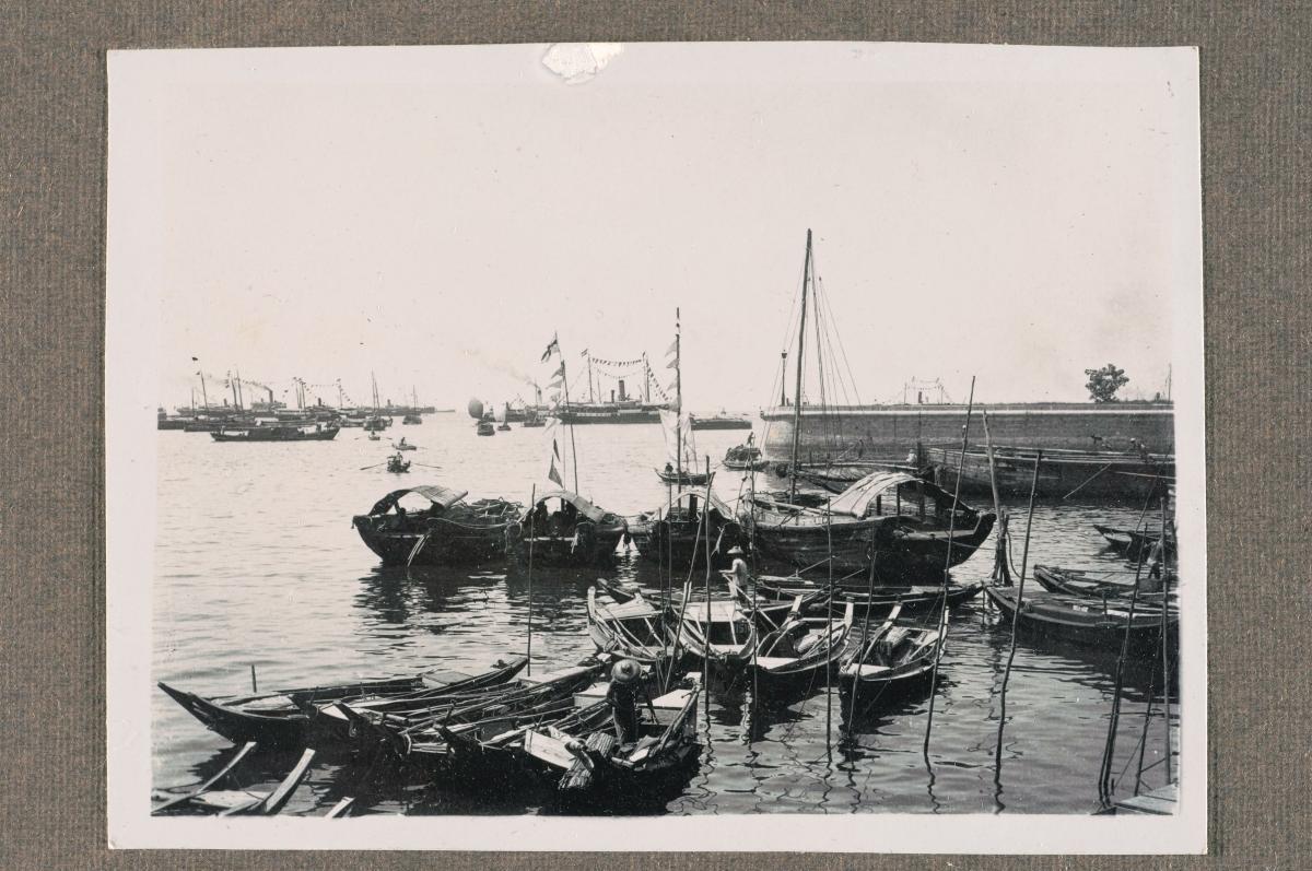 This photograph of steamships in the Singapore Harbour and ‘twakow’ lighter vessels at the mouth of the Singapore River comes from the album of Sergeant B.W. Turner of the 1/4th Battalion, King's Shropshire Light Infantry. Turner served in one of the battalion’s companies that was sent to Singapore in February 1915 to assist in putting down the Sepoy Mutiny.The King’s Shropshire Light Infantry (KSLI) was a British military regiment formed in 1881 through the merger of the 53rd (Shropshire) Regiment and the 85th King's Light Infantry. The 4th Battalion of the KSLI was created in 1908 from members of the Shropshire Rifle Volunteer Corps, who had served with the 2nd Battalion of the regiment during the South African War (1899-1902). Following the outbreak of the First World War in July 1914, the 1/4th Battalion was moved from its base in Shrewsbury, the main town of Shropshire county, to Bombay, India, arriving in December. The battalion was subsequently deployed to Rangoon, Burma. Following the outbreak of the Sepoy Mutiny (also known as the Singapore Mutiny or Indian Mutiny) in Singapore on 15 February 1915, six companies from the 1/4th Battalion were sent to Singapore to help the local authorities put down the uprising. The troops arrived on 20 February to find the mutiny already over, but stayed on to assist in mopping up operations.
