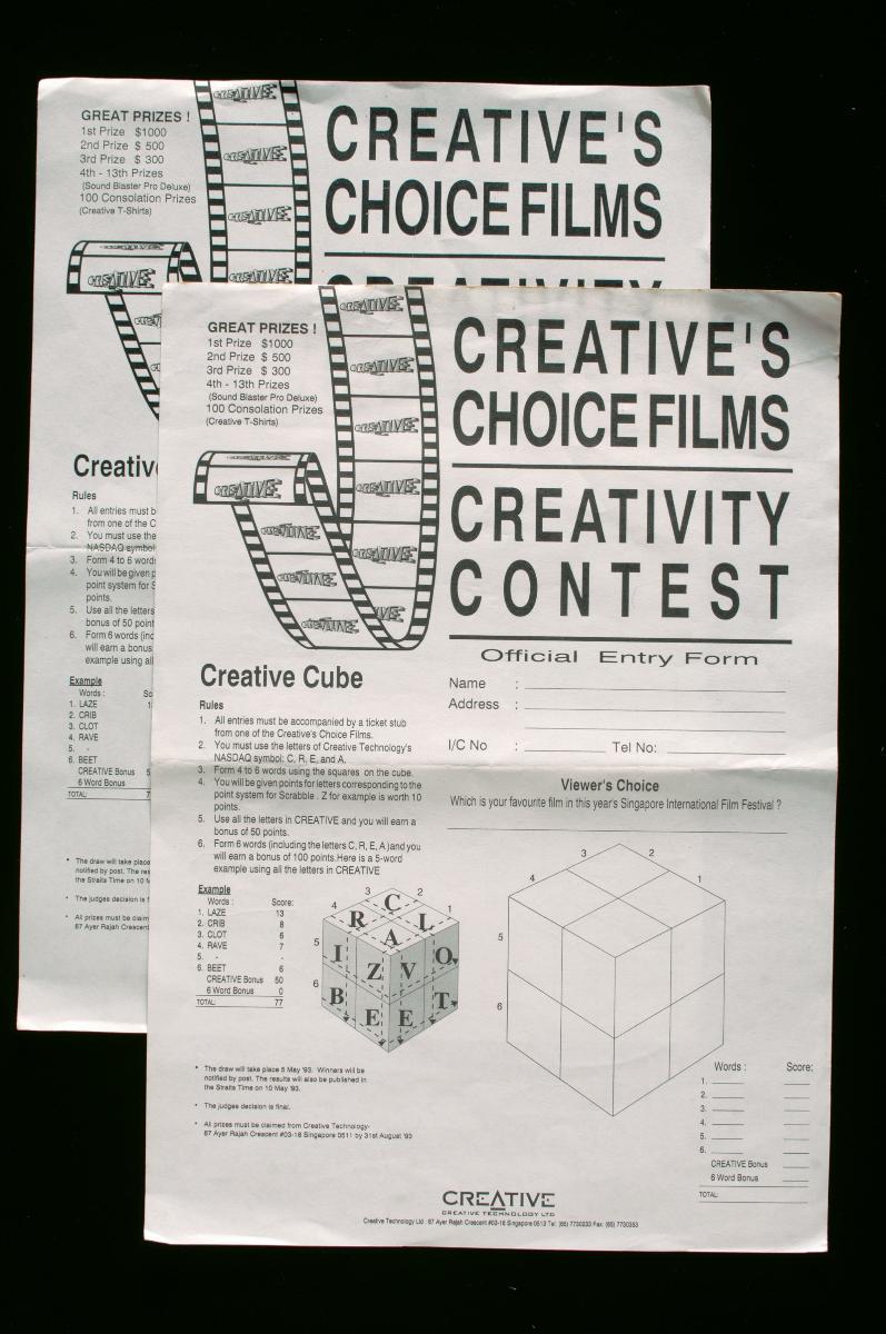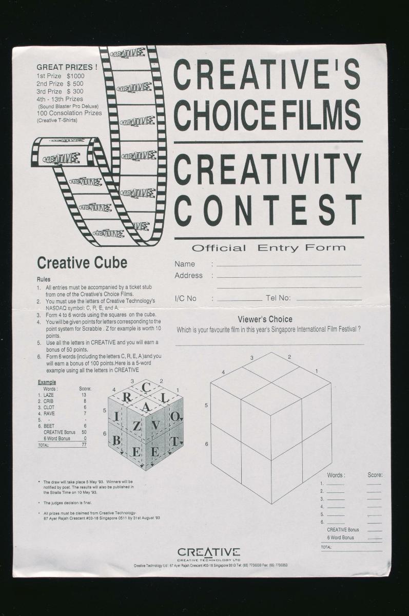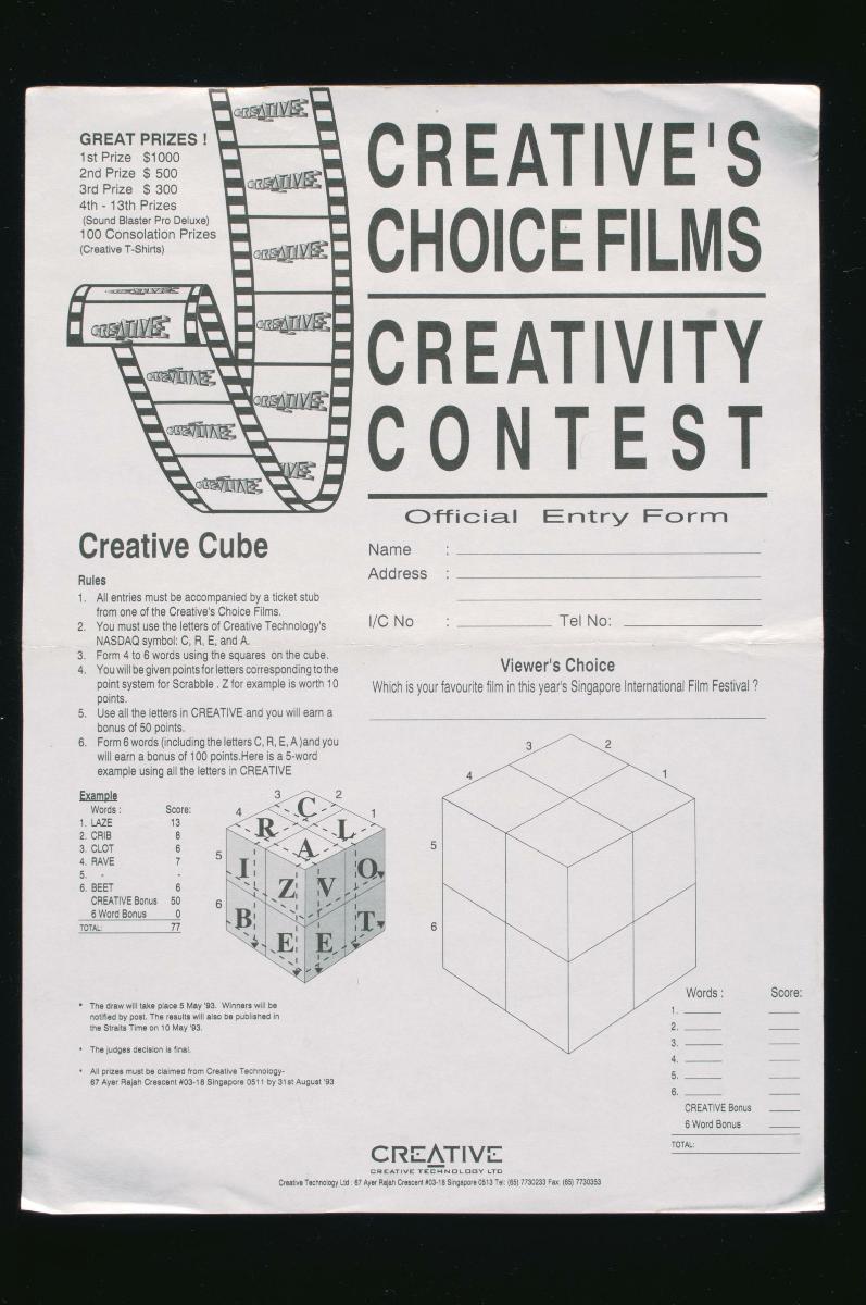 People's Choice Award survey form for the 5th Singapore International Film Festival (SIFF)
