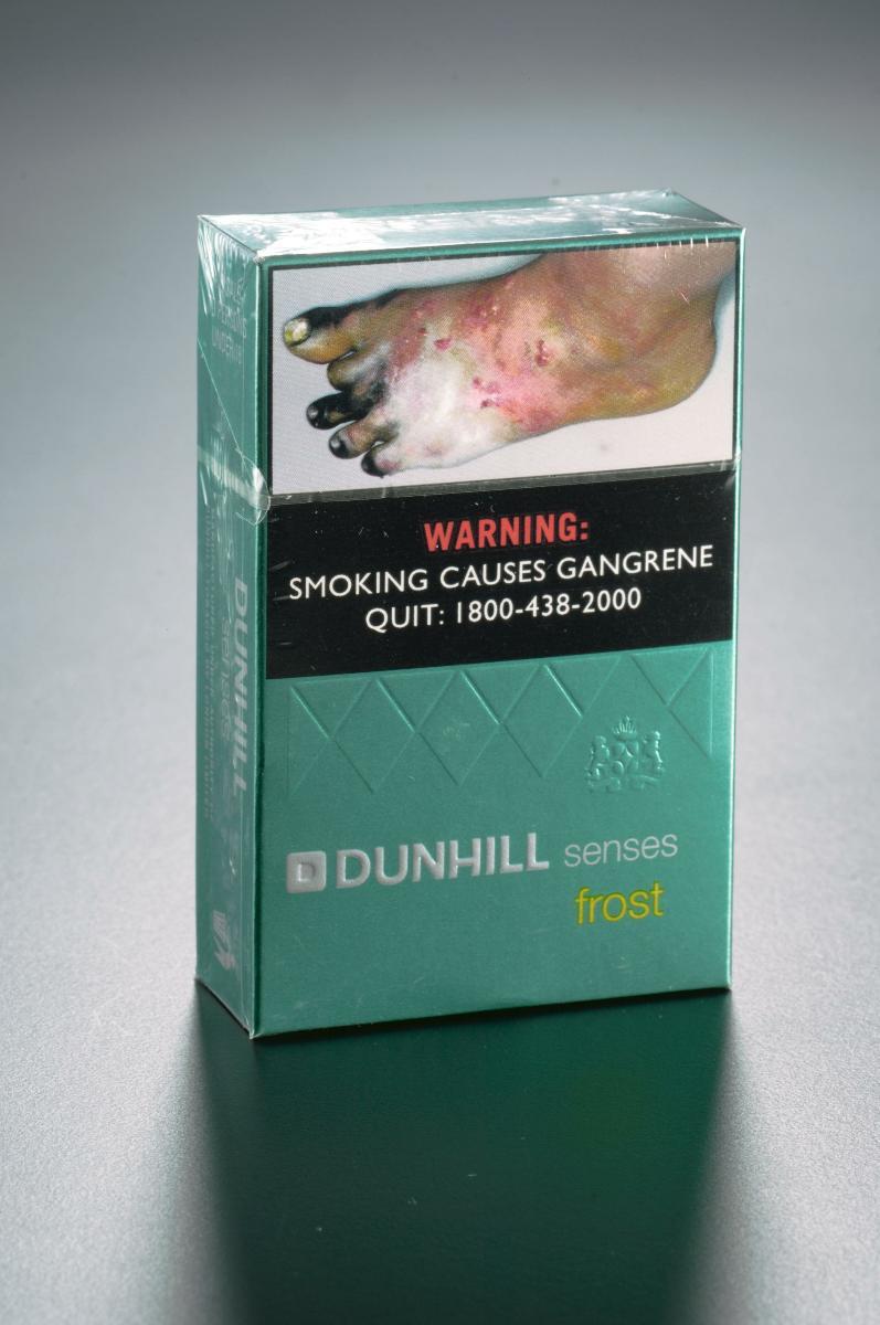 L&M cigarette box with health warning
