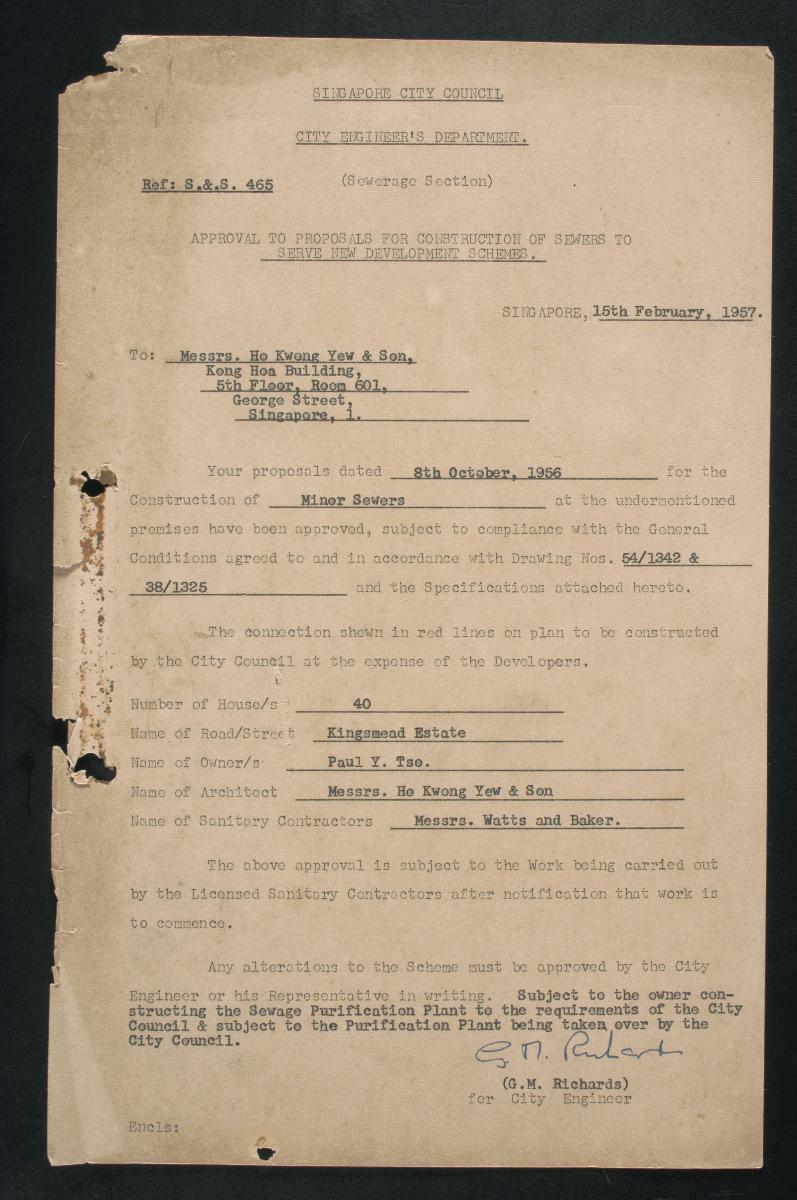 This envelope was addressed to Ho Kwong Yew & Sons at 601 Kong Hoa Building, 2 George Street, Singapore 1. The envelope has a four-cent Singapore-Malaya stamp affixed on it.The artefact most probably belonged to Ho Kok Hoe, a local architect and artist who learned to paint from his father Ho Kwong Yew, who was also an architect and artist, and his grandfather, who was a calligrapher. The younger Ho was a prominent architect who, while working for the family’s architectural firm Ho Kwong Yew & Sons, was responsible for designing Malaysia’s Muzium Negara (National Museum) in the 1960s. He was also actively involved in the local arts scene, especially during his two stints (1954–1967 and 1981–1983) as president of the Singapore Art Society. The Society was founded in October 1949 to help spread the practice and appreciation of art, improve the quality of local art, promote art exchanges with other countries and create opportunities for artists to learn and exhibit their works. The founding members of the society were, namely: Richard Walker (Art Superintendent); Charles Sulisbury (British Council); C. A. Gibson-Hill (Raffles Library and Museum); Francis Thomas (Chairman, Inter-School Art Exhibition Committee); Liu Kang (President, Society of Chinese Artists); Professor Roy Morell (University of Malaya); Mrs. Phillis Mackenzie; Suri bin Mohyani; and Tan Khoon Seng.