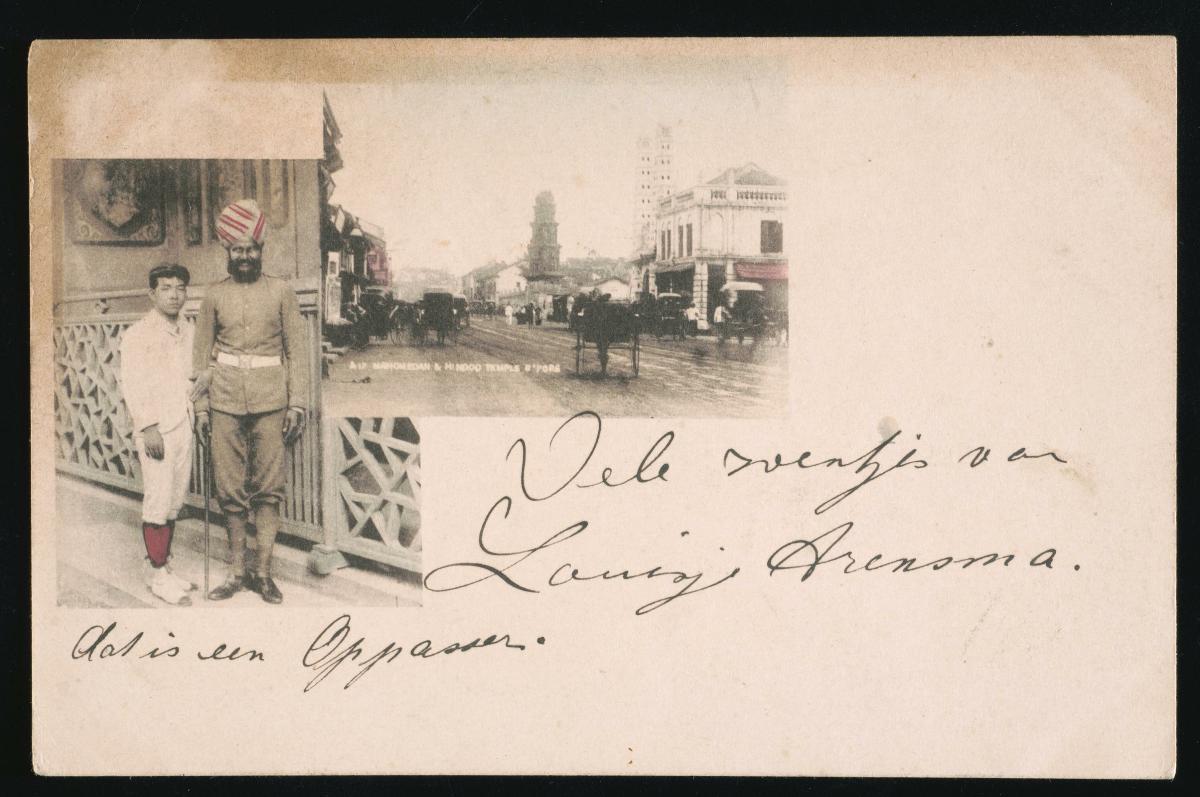 This photograph of a group of sepoys (Indian troops serving under the British Indian Army) comes from the album of Sergeant B.W. Turner of the 1/4th Battalion, King's Shropshire Light Infantry. Turner served in one of the battalion’s companies that was sent to Singapore in February 1915 to assist in putting down the Sepoy Mutiny.The King’s Shropshire Light Infantry (KSLI) was a British military regiment formed in 1881 through the merger of the 53rd (Shropshire) Regiment and the 85th King's Light Infantry. The 4th Battalion of the KSLI was created in 1908 from members of the Shropshire Rifle Volunteer Corps, who had served with the 2nd Battalion of the regiment during the South African War (1899-1902). Following the outbreak of the First World War in July 1914, the 1/4th Battalion was moved from its base in Shrewsbury, the main town of Shropshire county, to Bombay, India, arriving in December. The battalion was subsequently deployed to Rangoon, Burma. Following the outbreak of the Sepoy Mutiny (also known as the Singapore Mutiny or Indian Mutiny) in Singapore on 15 February 1915, six companies from the 1/4th Battalion were sent to Singapore to help the local authorities put down the uprising. The troops arrived on 20 February to find the mutiny already over, but stayed on to assist in mopping up operations.
