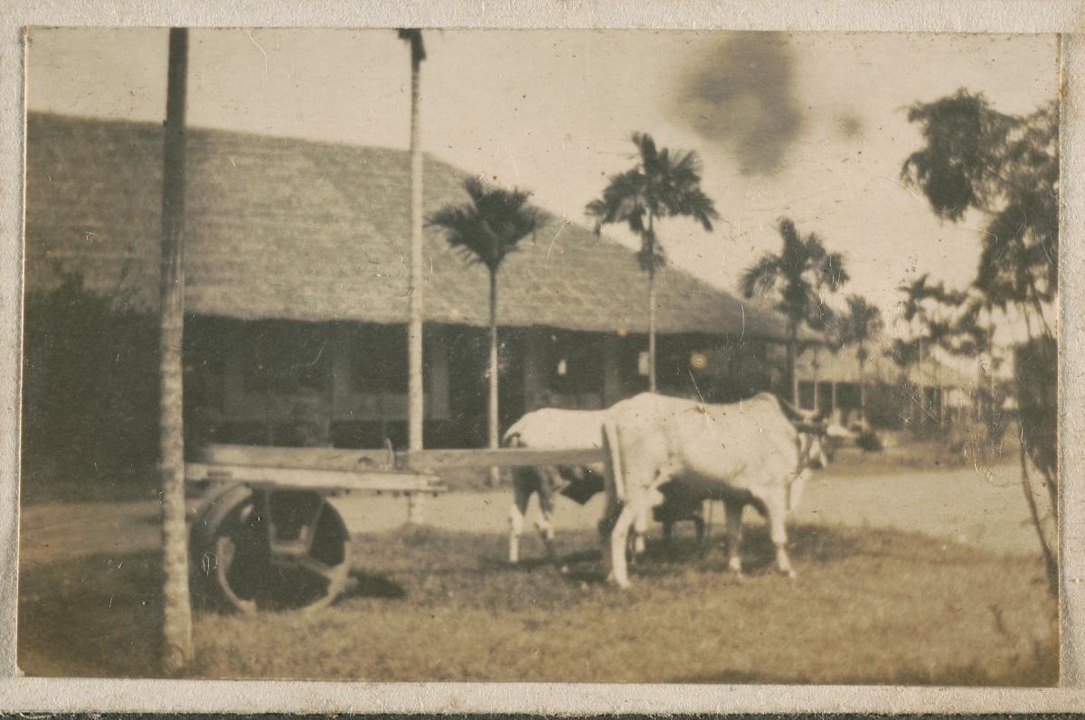 This photograph of a bullock cart at Tanglin Barracks (now part of the Dempsey Road lifestyle and entertainment enclave) comes from the album of Sergeant B.W. Turner of the 1/4th Battalion, King's Shropshire Light Infantry. Turner served in one of the battalion’s companies that was sent to Singapore in February 1915 to assist in putting down the Sepoy Mutiny.The King’s Shropshire Light Infantry (KSLI) was a British military regiment formed in 1881 through the merger of the 53rd (Shropshire) Regiment and the 85th King's Light Infantry. The 4th Battalion of the KSLI was created in 1908 from members of the Shropshire Rifle Volunteer Corps, who had served with the 2nd Battalion of the regiment during the South African War (1899-1902). Following the outbreak of the First World War in July 1914, the 1/4th Battalion was moved from its base in Shrewsbury, the main town of Shropshire county, to Bombay, India, arriving in December. The battalion was subsequently deployed to Rangoon, Burma. Following the outbreak of the Sepoy Mutiny (also known as the Singapore Mutiny or Indian Mutiny) in Singapore on 15 February 1915, six companies from the 1/4th Battalion were sent to Singapore to help the local authorities put down the uprising. The troops arrived on 20 February to find the mutiny already over, but stayed on to assist in mopping up operations.