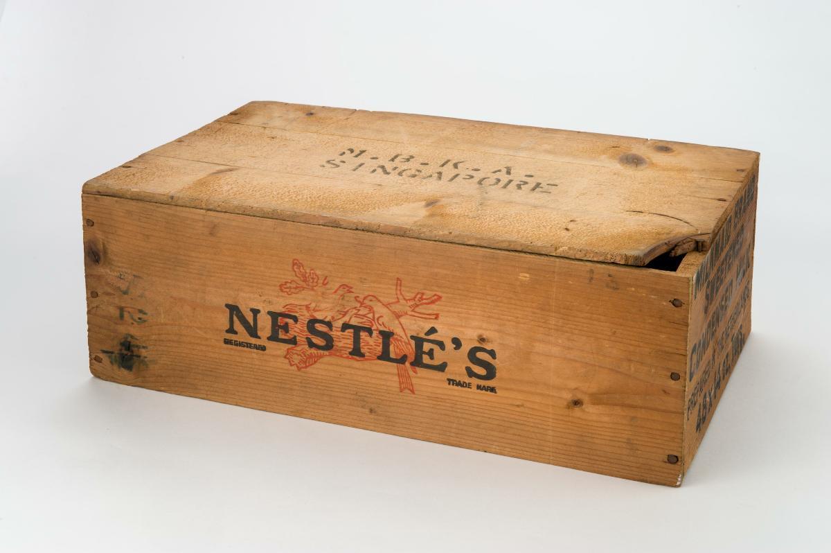 The photograph shows a 'Nestle Food' advertisement on an electrical tram amid several rickshaws in the background. The first steam tram service was introduced in Singapore in 1886, but was discontinued in 1894 due to its high operational costs and low profit margin. Electric tramways opened in 1905 with 50 single deck passenger cars and met with little success as its fares were more expensive than other modes of public transport such as the rickshaw. The expansion of the commercial sector created a temporary boom for the electrical tram which saw an increase in the number of passengers and the Singapore Electric Tramways Limited making a modest profit in 1909. The company went through several ups and downs thereafter and eventually wound up in 1926. The trams were then phased out and replaced with trolley buses by the end of 1927.