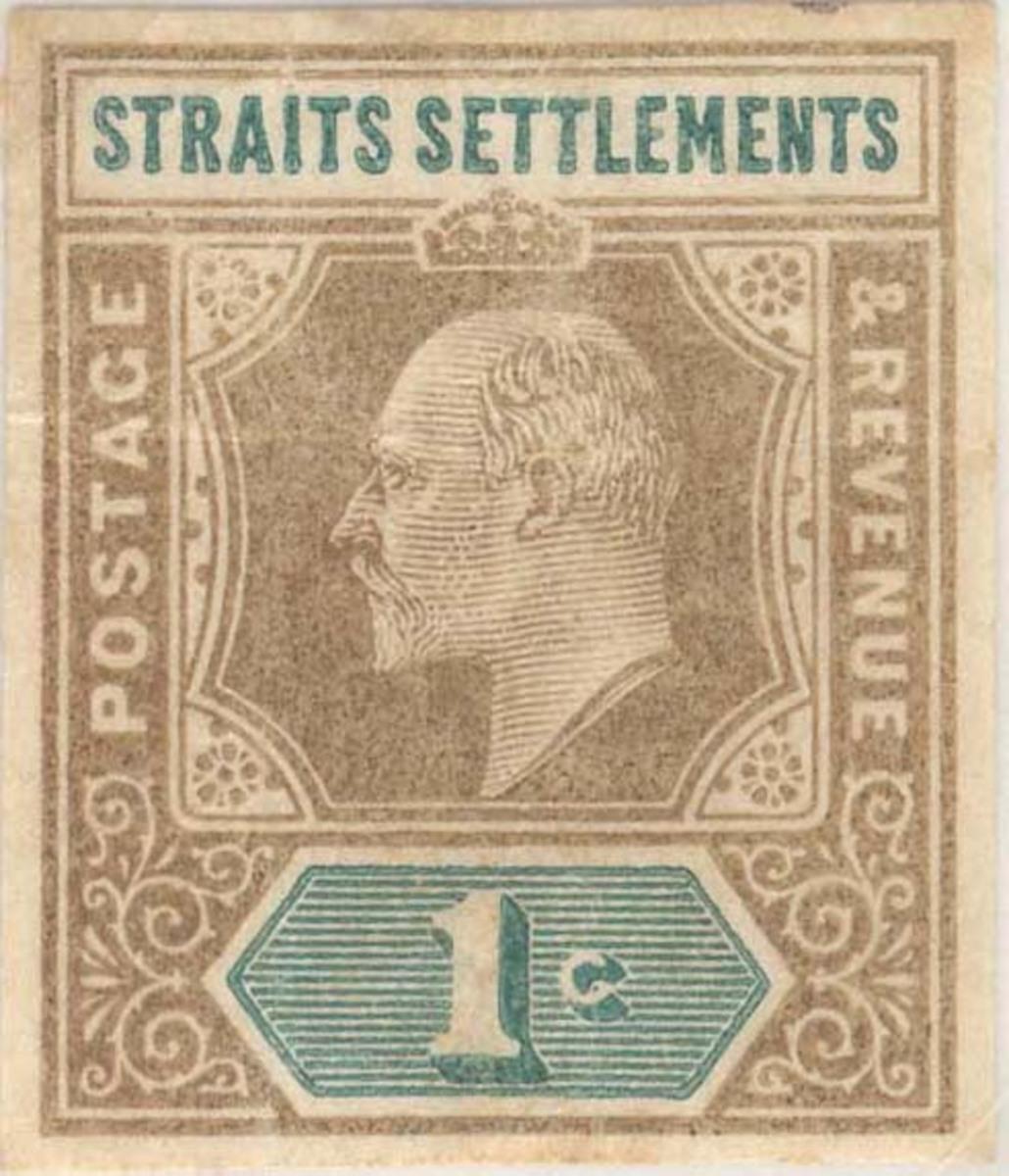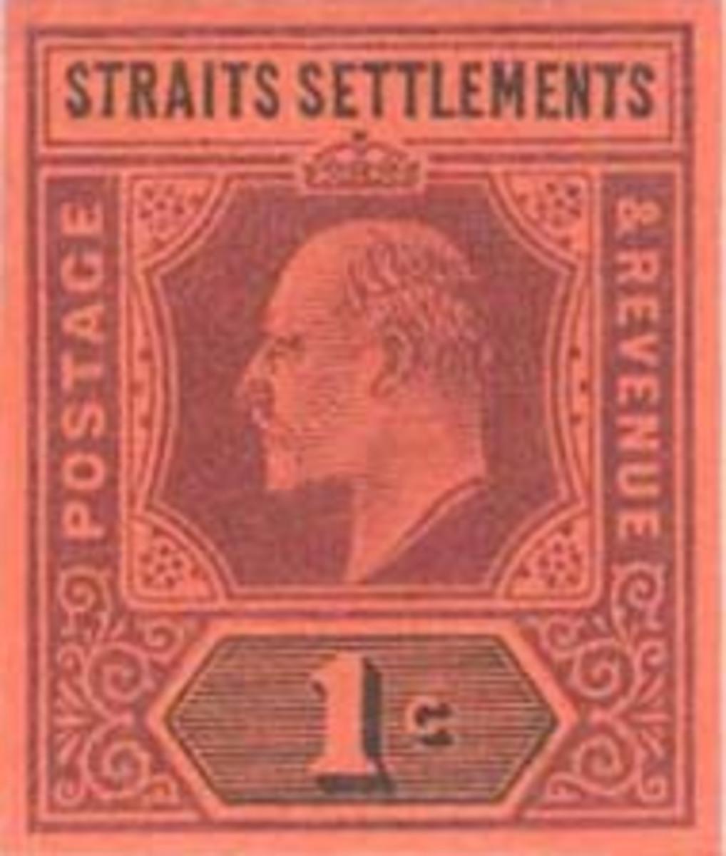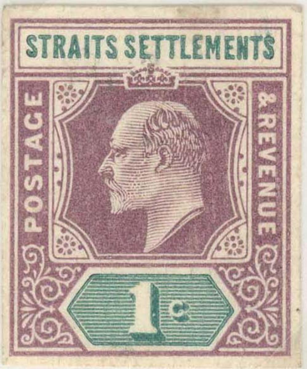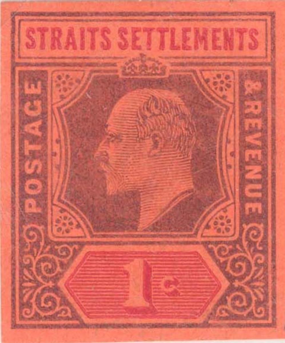 Imperforate colour trial of King Edward VII 1-cent purple on red stamp.