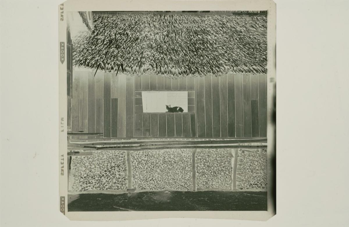 Negative photograph of a kampong house and banana trees by Lee Sow Lim