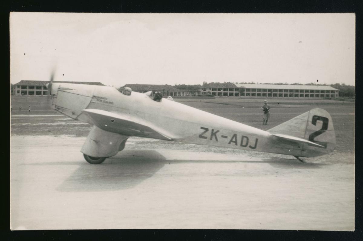 This is a photograph of an aeroplane on the grounds of Seletar Airbase being admired by visitors.The picture was taken during the Singapore stopover leg of an air race from United Kingdom to Australia.