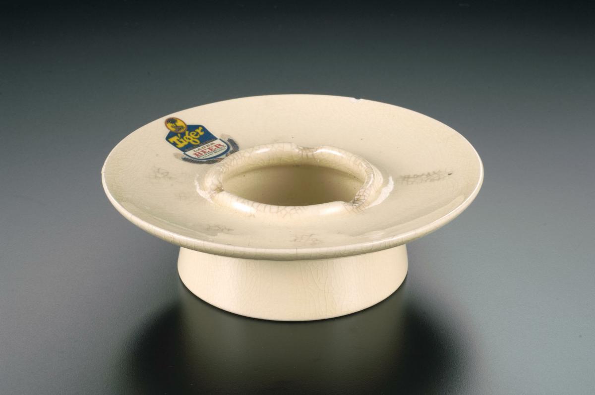 This is an ashtray advertising the ‘Tiger Beer’ brand of alcohol. Items such as this were commonly found in coffee shops.