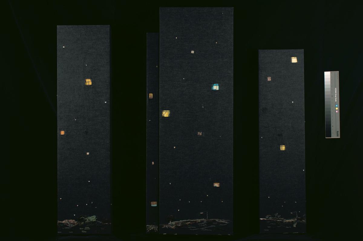Born in Hanoi, Nguyen Minh Thanh (b.1971) graduated from Hanoi University of Fine Arts in 1996. Through drawings of himself and his mother, Thanh explores themes of familial relationships within the larger social, philosophical and psychological spheres. Since 1995, Thanh has participated in more than 30 solo and group exhibitions in Vietnam and other countries, including the United States, Australia, Germany, etc. Using a combination of watercolour, gouache, and Chinese ink on Japanese rice paper, Thanh’s self-portrait exhibits simple innocence, in a quiet and surreal manner. Unlike his other works, ‘Sleepless Nights I’ is complex and meticulously executed.