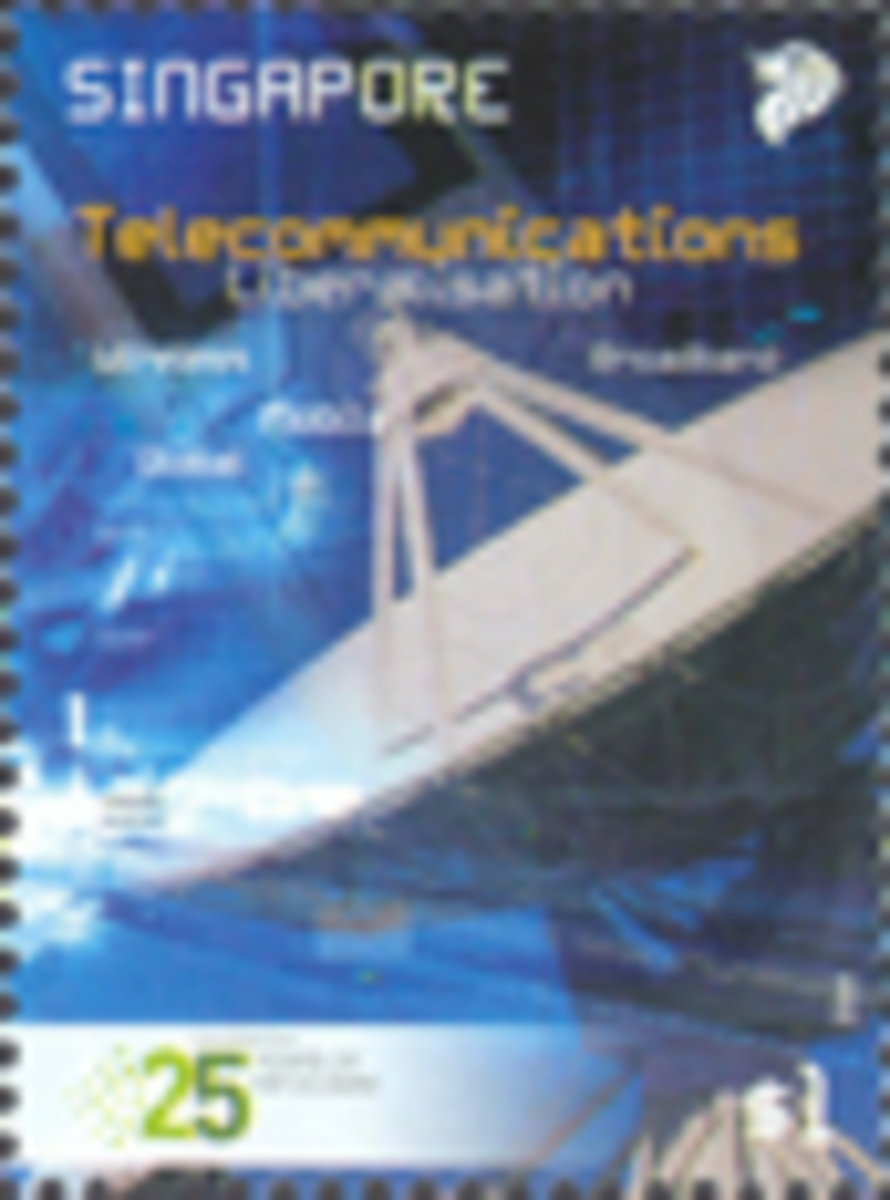 This is one of the four stamps issued as a set by Singapore Post on 20 June 2006. It was issued to commemorate 25 years of infocomm development. This $1 stamp features the key area of telecommunications.