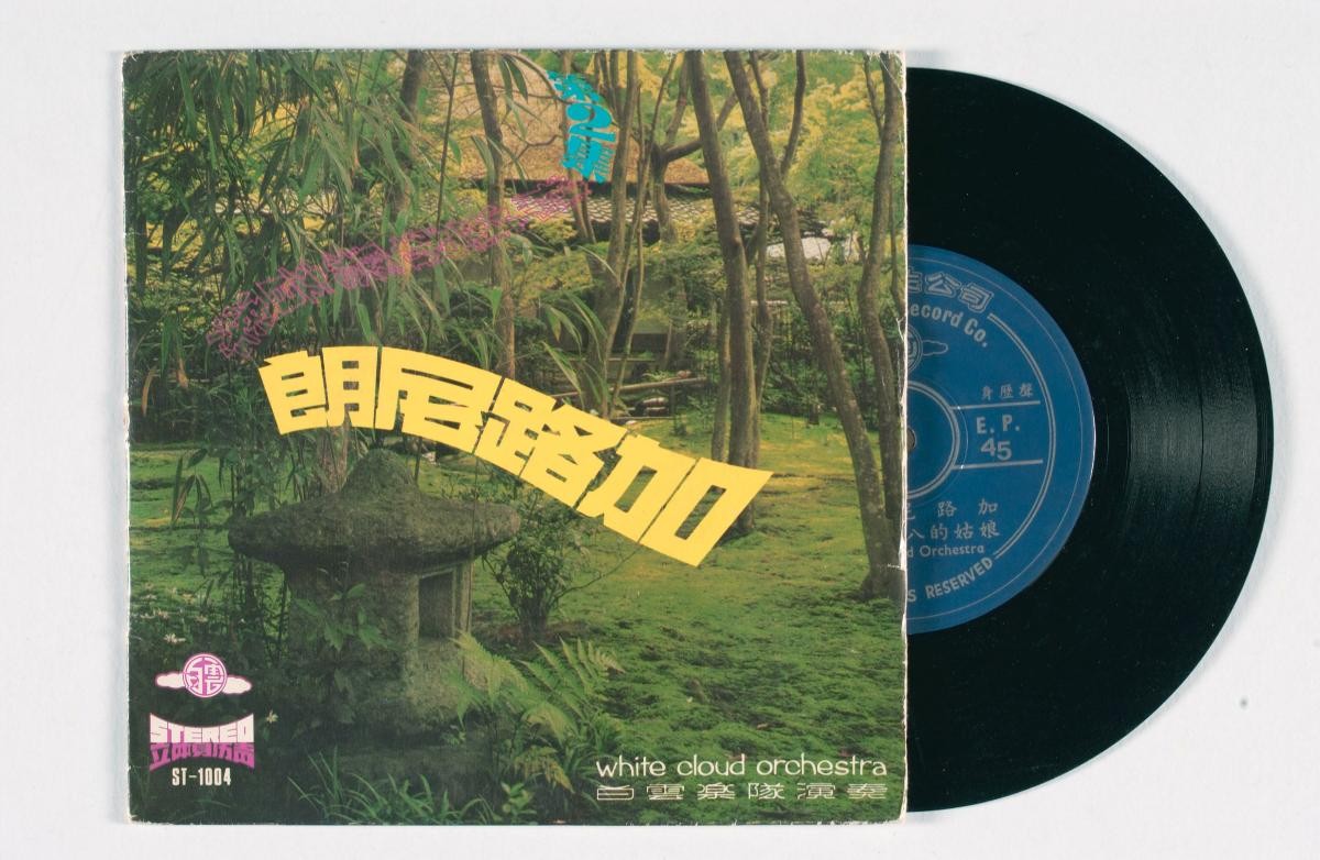 This Chinese vinyl record titled ‘Spring Bloom’ (迎春花, Yingchunhua) features songs performed by the White Cloud Orchestra (白云乐队, Baiyunyuedui). The 45 rpm record was produced by the White Cloud Record Co. (白云唱片公司, Baiyunchangpiangongsi).