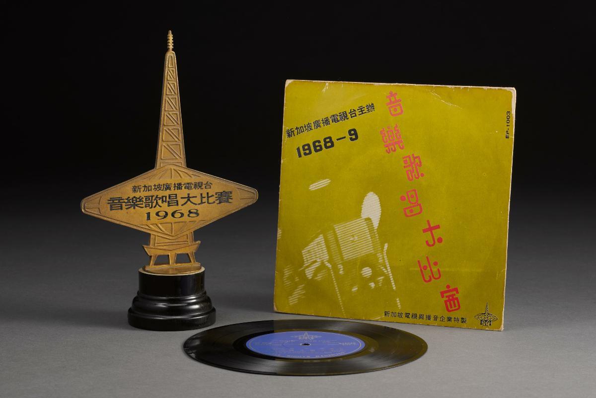 The Malay vinyl record cover features songs from a Cathay-Keris film, while the English vinyl record features the song ‘Girls’ by Johnny Burnette.