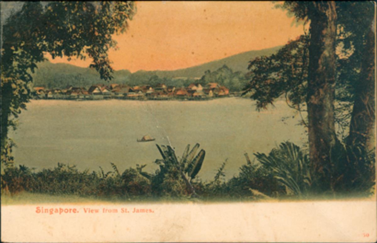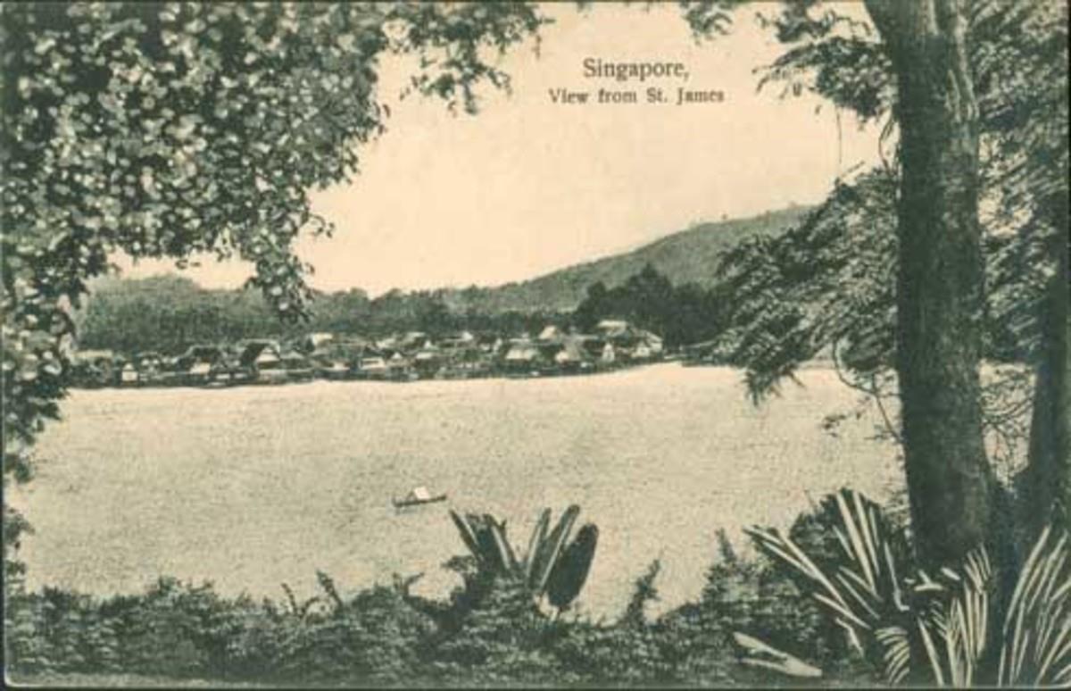 This is a view overlooking Kampong Telok Saga on the north side of Pulau Brani. The waterway between Singapore Island on the north and Pulau Brani on the south was inhabited by Orang Laut, aboriginal Malays from the Malacca Strait and the Riau-Lingga archipelago who had lived in Singapore from at least the beginning of the 16th century. There are also references to them in some of the 17th century accounts, and in accounts by Dr. John Crawfurd and John Finlayson who visited in 1822. While the ‘Orang Laut’ (indigenes) traditionally lived in small boats, by the end of the 17th century, a few had moved into houses. By the time New (Keppel) Harbour was used in 1848, there were at least four Orang Laut villages on different sides of the island.