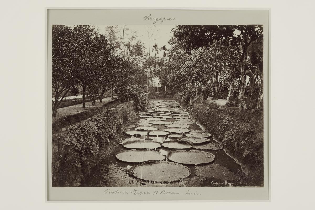 Albumen print of the Victoria regia species at the Singapore Botanic Gardens