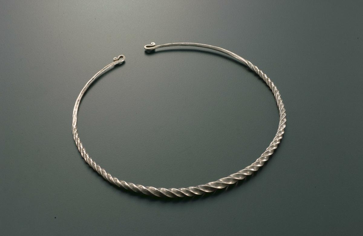 This coiled neckring comprises two other parts - a shoulder piece, which is placed like a collar beneath the neck piece, and an additional coil attached to the shoulder piece. The neckring belongs to a set of brass jewellery that is reportedly from a Padaung grave site in Burma, and is around 120 years old. The length of the neckcoil presumably indicates the age and status of the wearer. The heaviness of the coils and good condition with nice patina despite reported burial also suggests that good quality material were sought after. It appears to have been made by coiling a continous square section thread of brass to produce each item.The Padaung community is also known as Kayan, a member of the Karenni people, who are Tibeto-Burman speakers. They live in Myanmar and more recently in Thailand, where many have migrated to in the wake of political problems.