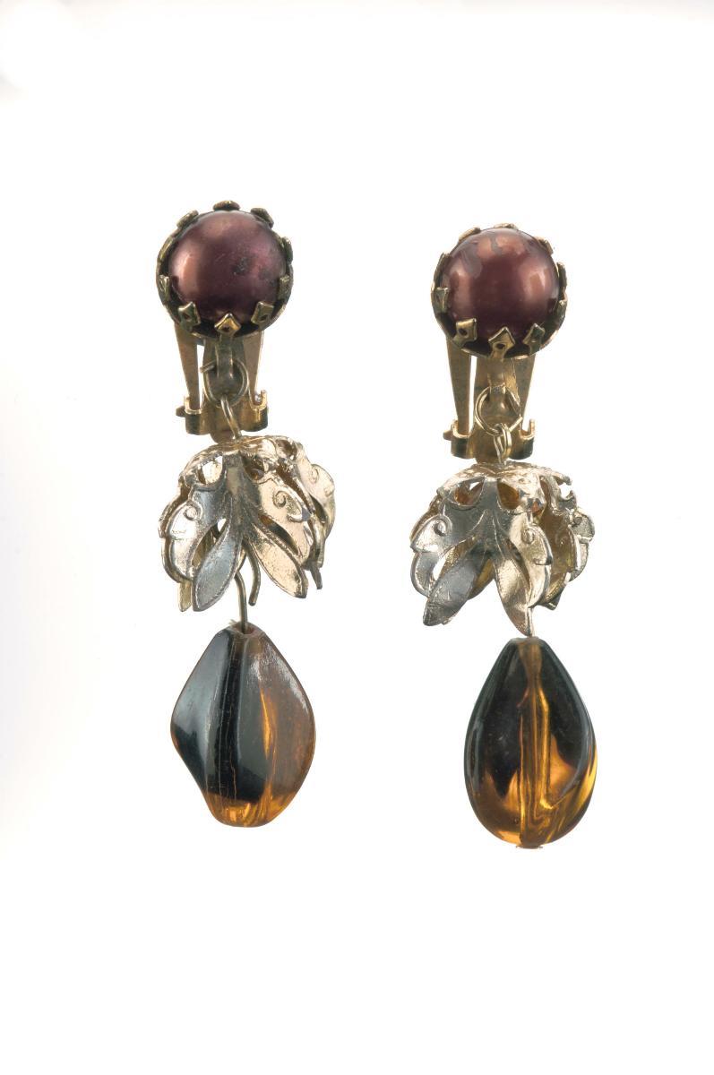 Notable for her work in advancing the status and condition of women in Singapore, Mrs. Seow Peck Leng was also among the first group of women to enter politics in Singapore's first General Election in 1959. Her efforts that benefited women included the founding of the Singapore Women’s Association as well as a programme she started after the fateful Bukit Ho Swee fire in 1961 to encourage illiterate women to put their savings in a bank account for safekeeping rather than in their homes. This pair of earrings belongs to a set of jewellery Mrs. Seow donated to the Museum.