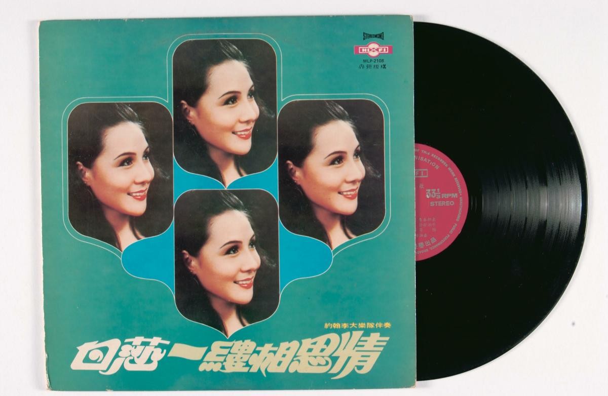 This Chinese vinyl record titled ‘Xiang Si Ji Shi Jue, Chu Lian De Shao Nǚ’ (相思几时绝、初恋的少女) features pop songs by singers Lin Song Yi (林松义) and Li Jing Mei (李静美), with accompanying music by the Lucky Year Big Band (幸福年大乐队, Xingfuniandayuedui). The 33⅓ rpm record was produced by Golden City Records (金城唱片, Jinchengchangpian).