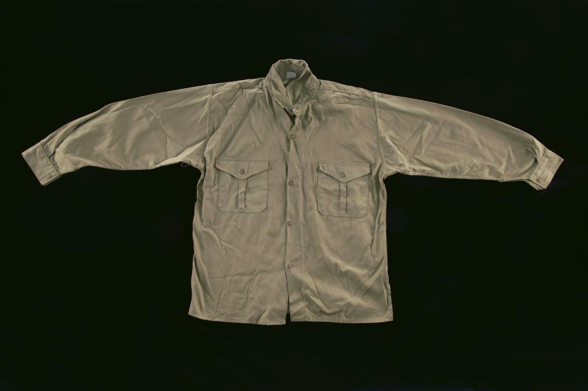 This is a Khaki short-sleeved shirt that was worn by construction labourers.