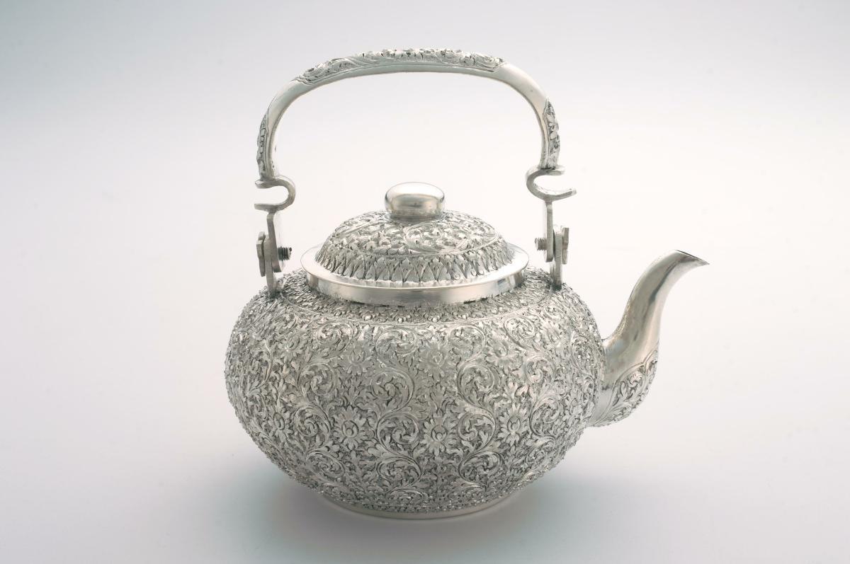 This exquisite teapot, which was made in England, belongs to a series of objects (accession nos. 2007-50972 to 51483) that document the lifestyle and consumption of a typical Chinese upper middle-class family in the mid 20th century.