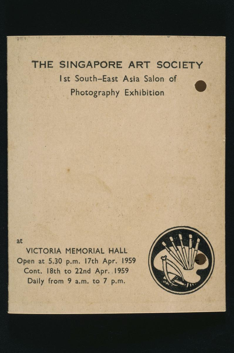 This flyer was for the First Annual Exhibition of Photographs organised by the Singapore Art Society at the British Council Hall between 29 January and 5 February 1950.The artefact most probably belonged to Ho Kok Hoe, a local architect and artist who learned to paint from his father Ho Kwong Yew, who was also an architect and artist, and his grandfather, who was a calligrapher. The younger Ho was a prominent architect who, while working for the family’s architectural firm Ho Kwong Yew & Sons, was responsible for designing Malaysia’s Muzium Negara (National Museum) in the 1960s. He was also actively involved in the local arts scene, especially during his two stints (1954–1967 and 1981–1983) as president of the Singapore Art Society. The Society was founded in October 1949 to help spread the practice and appreciation of art, improve the quality of local art, promote art exchanges with other countries and create opportunities for artists to learn and exhibit their works. The founding members of the society were, namely: Richard Walker (Art Superintendent); Charles Sulisbury (British Council); C. A. Gibson-Hill (Raffles Library and Museum); Francis Thomas (Chairman, Inter-School Art Exhibition Committee); Liu Kang (President, Society of Chinese Artists); Professor Roy Morell (University of Malaya); Mrs. Phillis Mackenzie; Suri bin Mohyani; and Tan Khoon Seng.