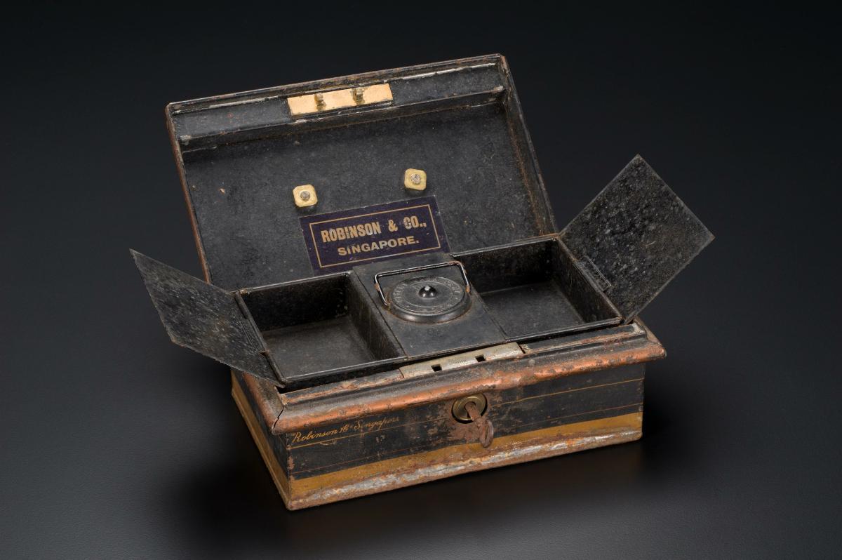 This is a box from Robinson and Company, the oldest department store in Singapore. This box was probably used to pack clothing. Boxes were used to pack clothing for the customer so as to keep the structure of the clothing. Robinsons, as it is commonly known as, was founded in 1858 by Englishman Philip Robinson. It was located at Raffles Place before it moved to the Specialists Shopping Centre after it was demolished by a fire in 1972. Robinsons was popular with the European community and the local upper class in the pre- and post-war years. In November 2013, Robinsons moved its Orchard store to a new $40-million store at The Heeren Shops, bringing in new trendy brands to attract an upmarket crowd.