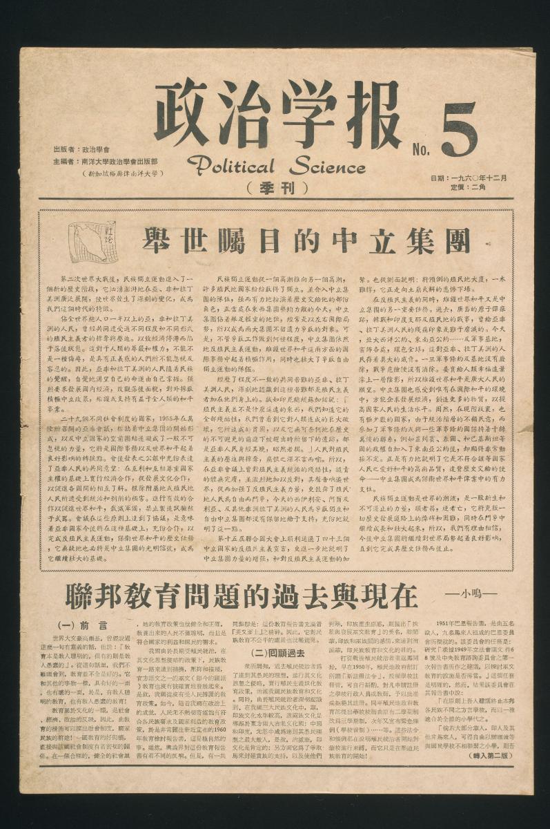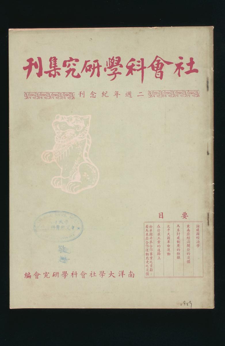 Journal entitled ‘Nanyang University Social Science Society’s Journal’ No. 7