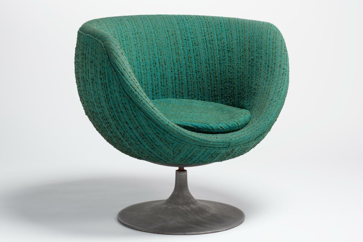 This pedestal footed table was bought by the donor at Diethelm furniture factory. It accompanied the pair of Apollo chairs, which are part of this donationThe form and the material of the table, like that of the chairs, shows the use of new materials as well as the influence of the 'space-age' design