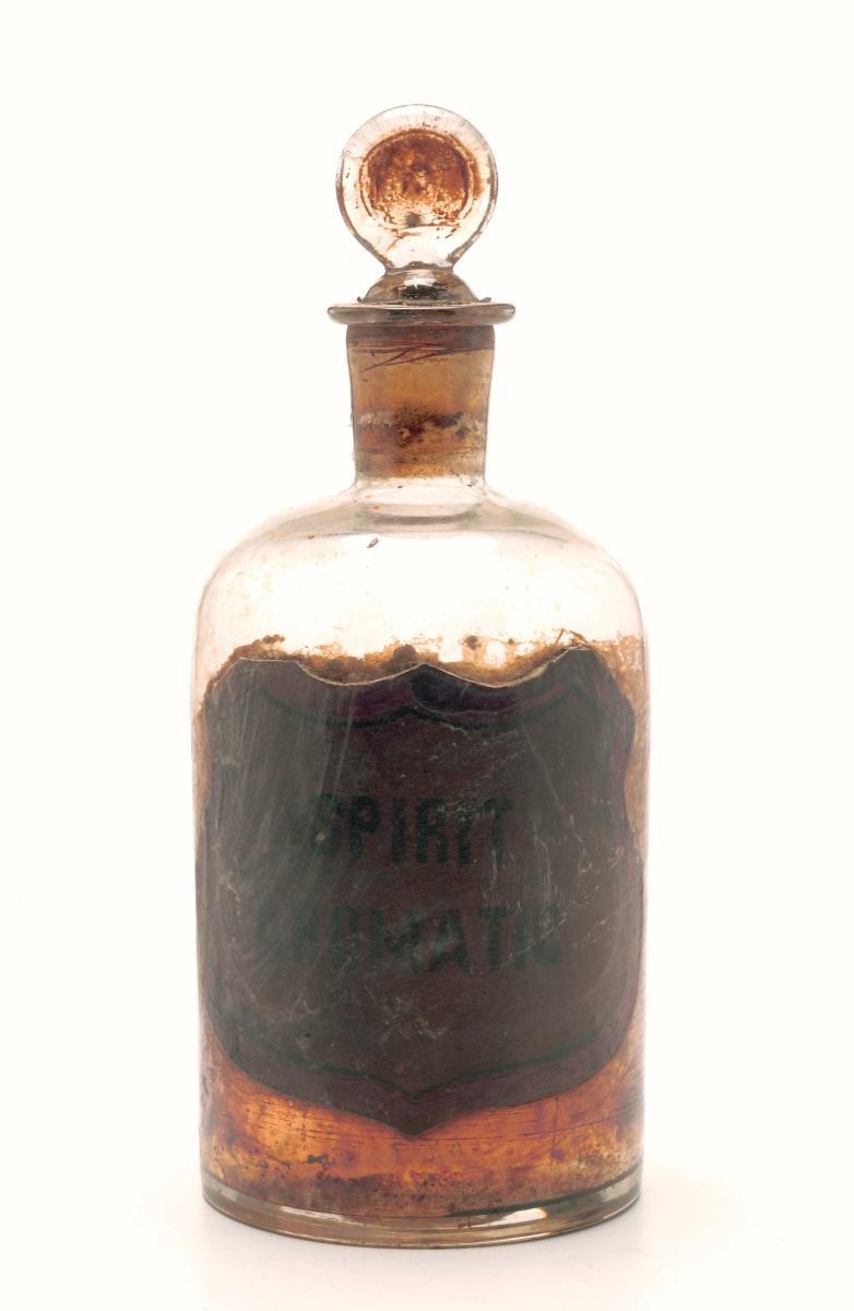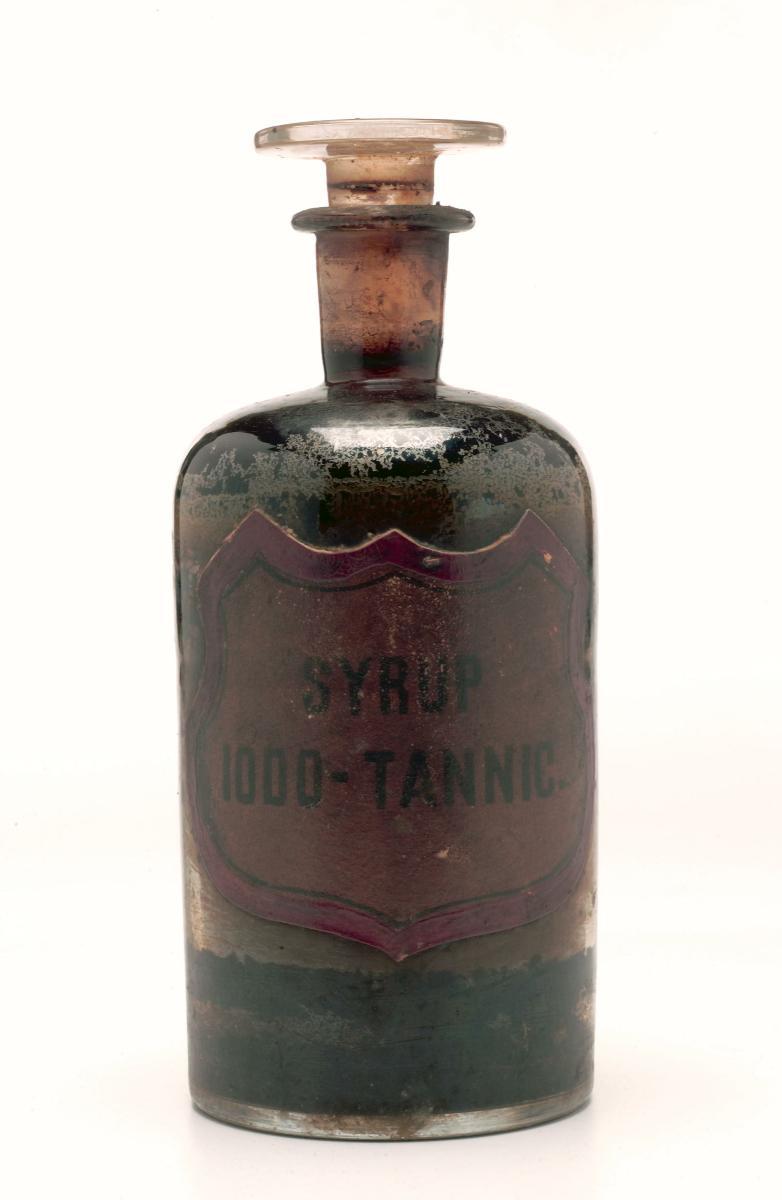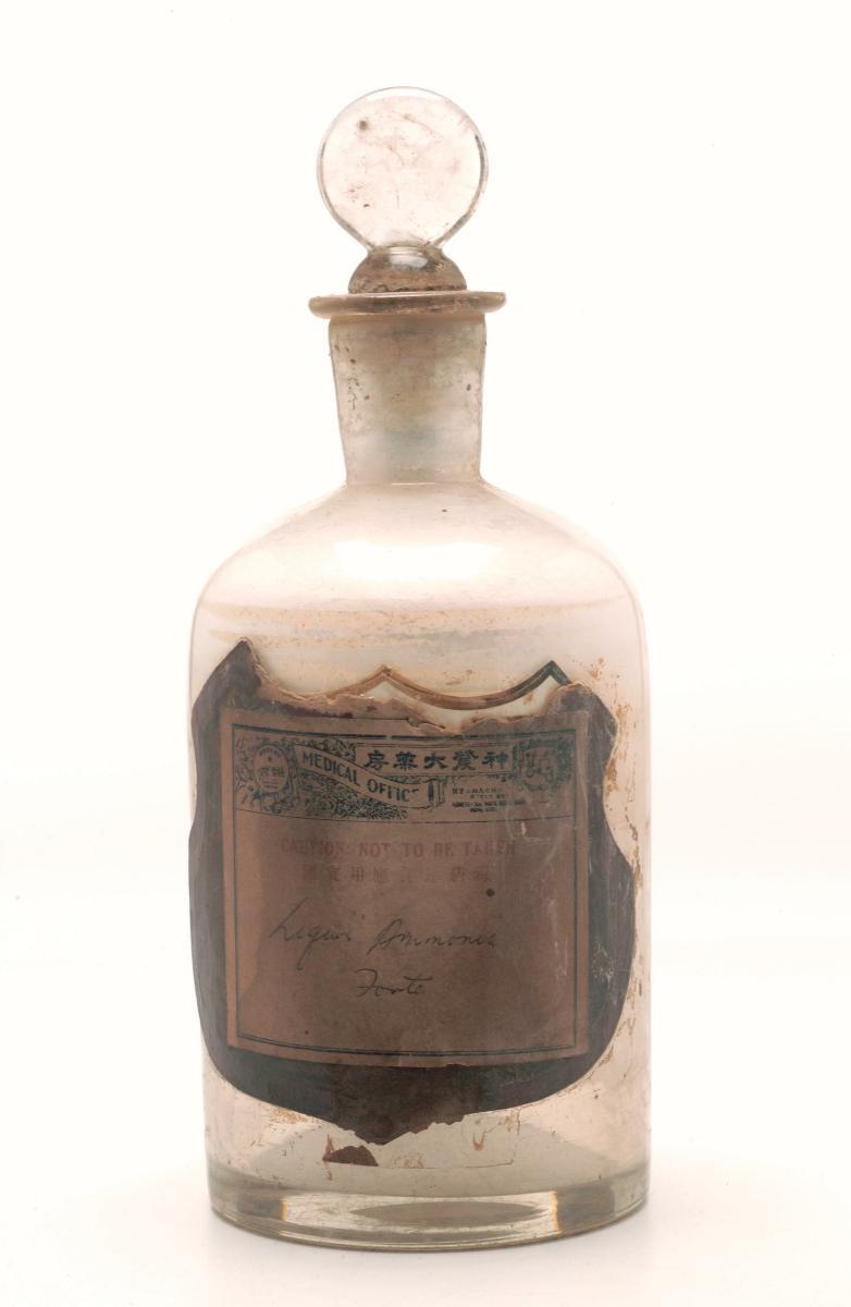 This glass bottle was used to hold medicine sold by the Foo Thian Suan Medical Hall. The Medical Hall was run by the Hainanese. It was located at Battery Road from the late 19th century. Its original owners were Germans.