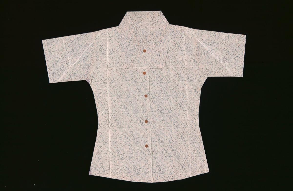 This paper blouse is burnt as an offering to a female ancestor or deceased. Burnt offerings are integral to Taoist worship and rituals. Offerings are burnt as gifts during temple festivals to commemorate the birthdays of deities. At Taoist funerals and religious ceremonies, burnt offerings are made to ensure that the deceased, or an ancestor, enjoys a comfortable life in the netherworld. The articles burnt as offerings are made from paper and are often imitations of real objects. They can be purchased from shops dedicated to selling these religious paraphernalia, which are referred to locally as “paper shops”. These shops sell a wide range of items, from elaborately decorated paper houses, cars and furniture, to bank notes and garments. The paper garments are usually life-size and the more elaborate ones follow the iconographic conventions of opera costumes closely. Chinese operas are performed as part of Taoist religious festivities.