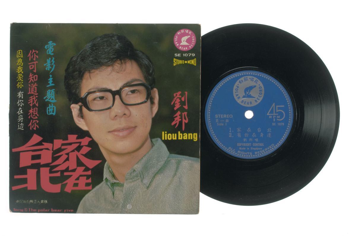 This 45 rpm record was produced by Polar Bear Record. Liou Bang emerged as the champion in a singing competition held by the Kreta Ayer People’s Theatre in 1969. He was nicknamed ‘King of Pop of Kreta Ayer’.