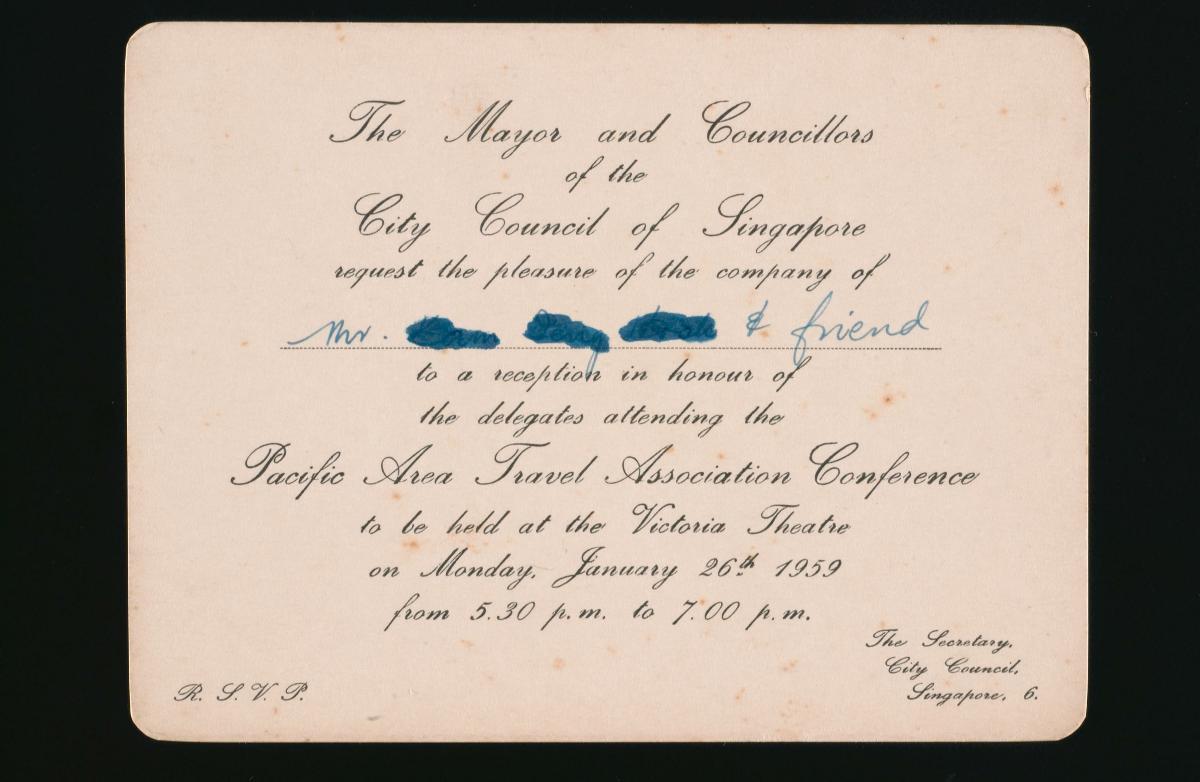 This is an invitation card given to a guest of the reception held in honour of the Councillors from the Municipalities of the Federation of Malaya.