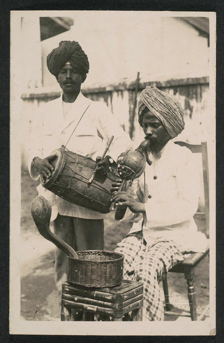 Most of the snake charmers who arrived in Singapore during the 19th century were immigrants from the city of Poona (now known as Pune) in the western Indian state of Maharashtra. These roadside entertainers made a living by making their pet snakes ‘dance’ to the music of their ‘naskar’, which is a flute-like instrument made from a bamboo stem and coconut shell. Snake charmers were a popular tourist attraction in the 1950s and 1960s and they often performed outside hotels and other public places that were frequented by tourists such as Sentosa and Mount Faber. They have since become a rare sight in modern-day Singapore.