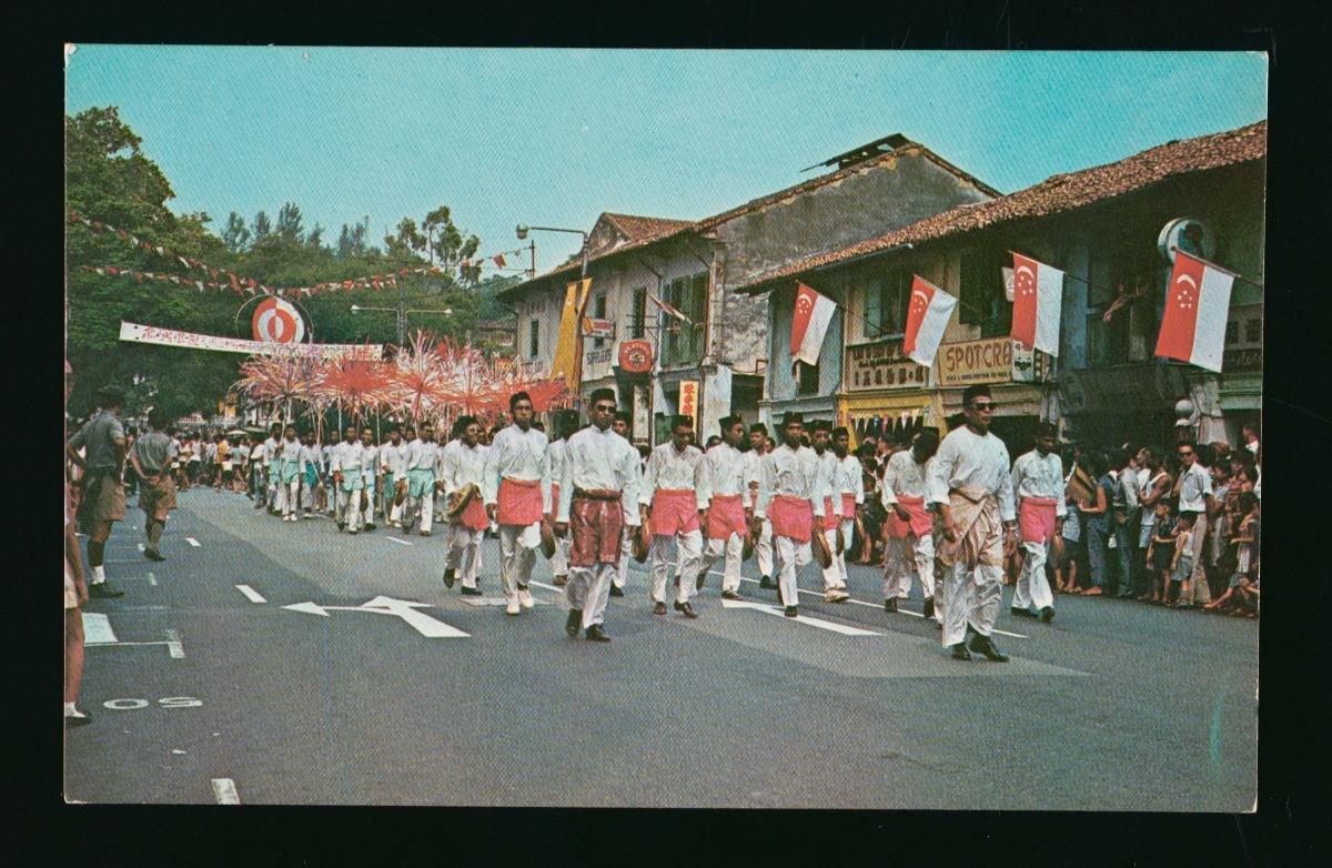 On 9 August 1965, Singapore left the Federation of Malaysia and became an independent nation-state. Since then, Singapore has conducted grand and impressive Parades and performances annually to celebrate its National Day. This picture depicts the colourful National Day procession along an unidentified road that probably took place in 1967
