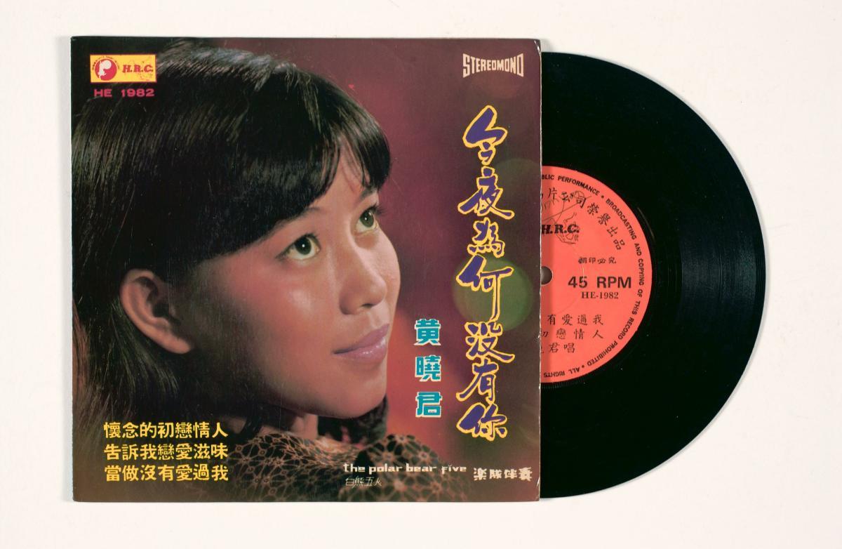 This Chinese vinyl record features songs by singer Huang Xiao Jun (黄晓君), with accompanying music by the band The Travellers (旅者乐队, Lǚzheyuedui). The 45 rpm record was produced by the Malaysia-based Happy Records Co. (马来西亚快乐唱片公司, Malaixiyakuailechangpiangongsi).
